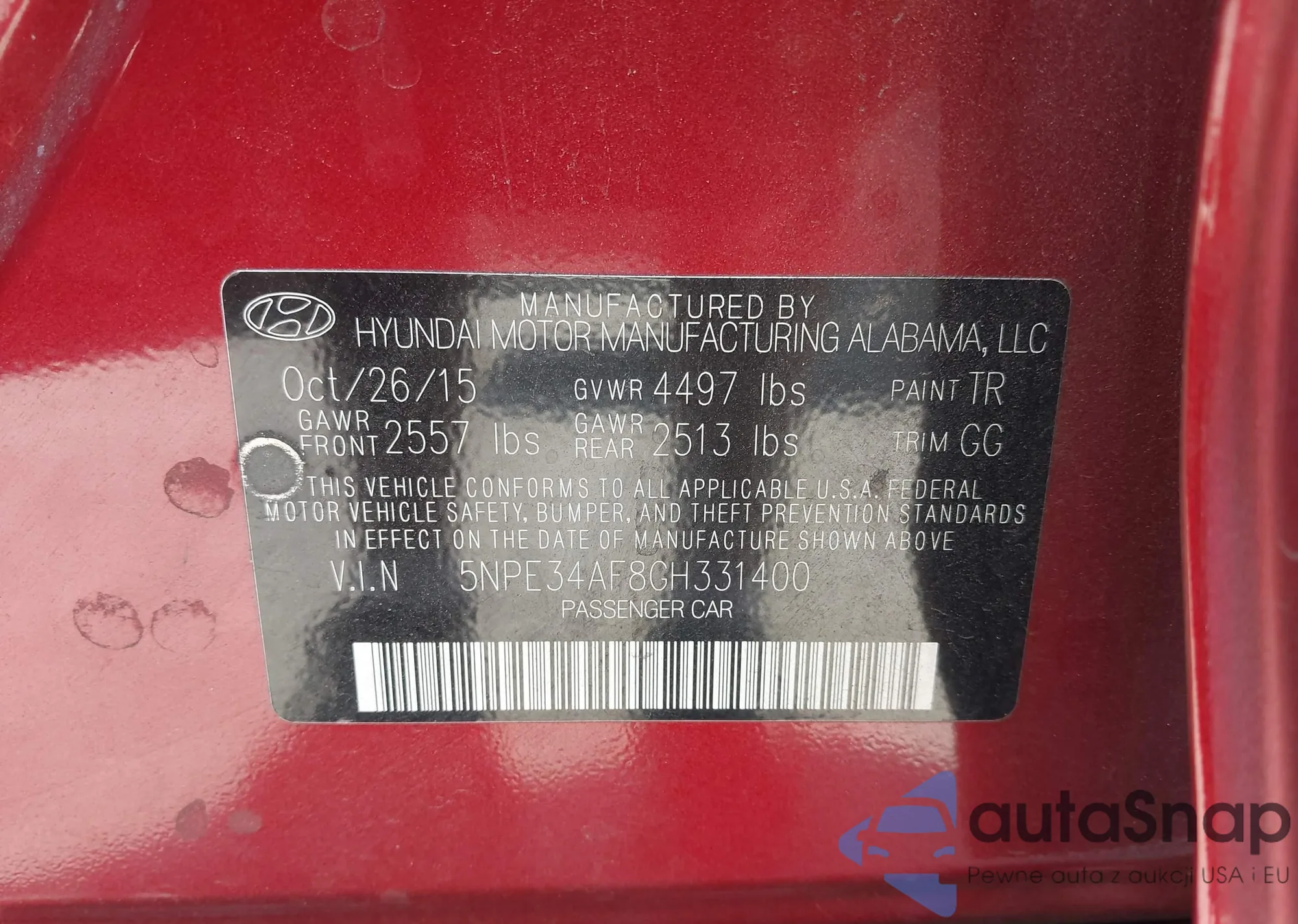 LOT: 42782568 VIN: KM8JUCAG8FU063656