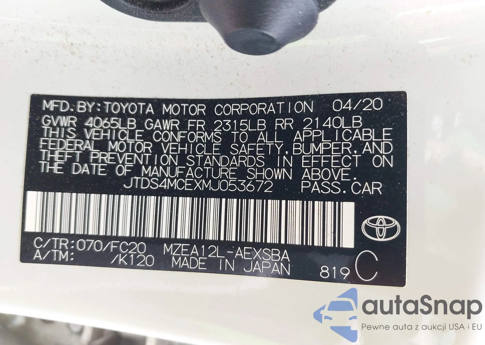LOT: 42267377 VIN: 2T3A1RFV0PC331368