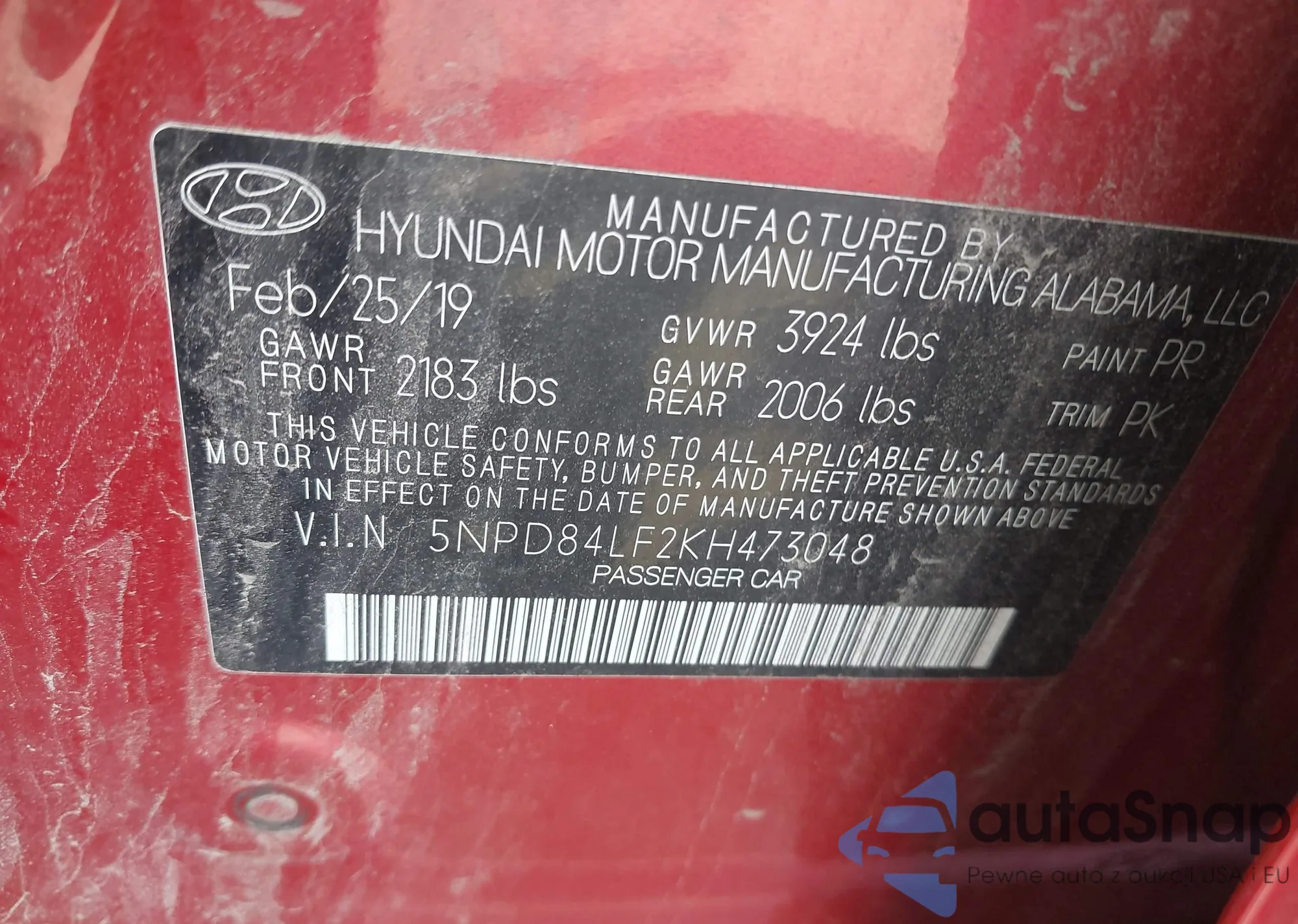 • VIN 5NPD84LF2KH473048