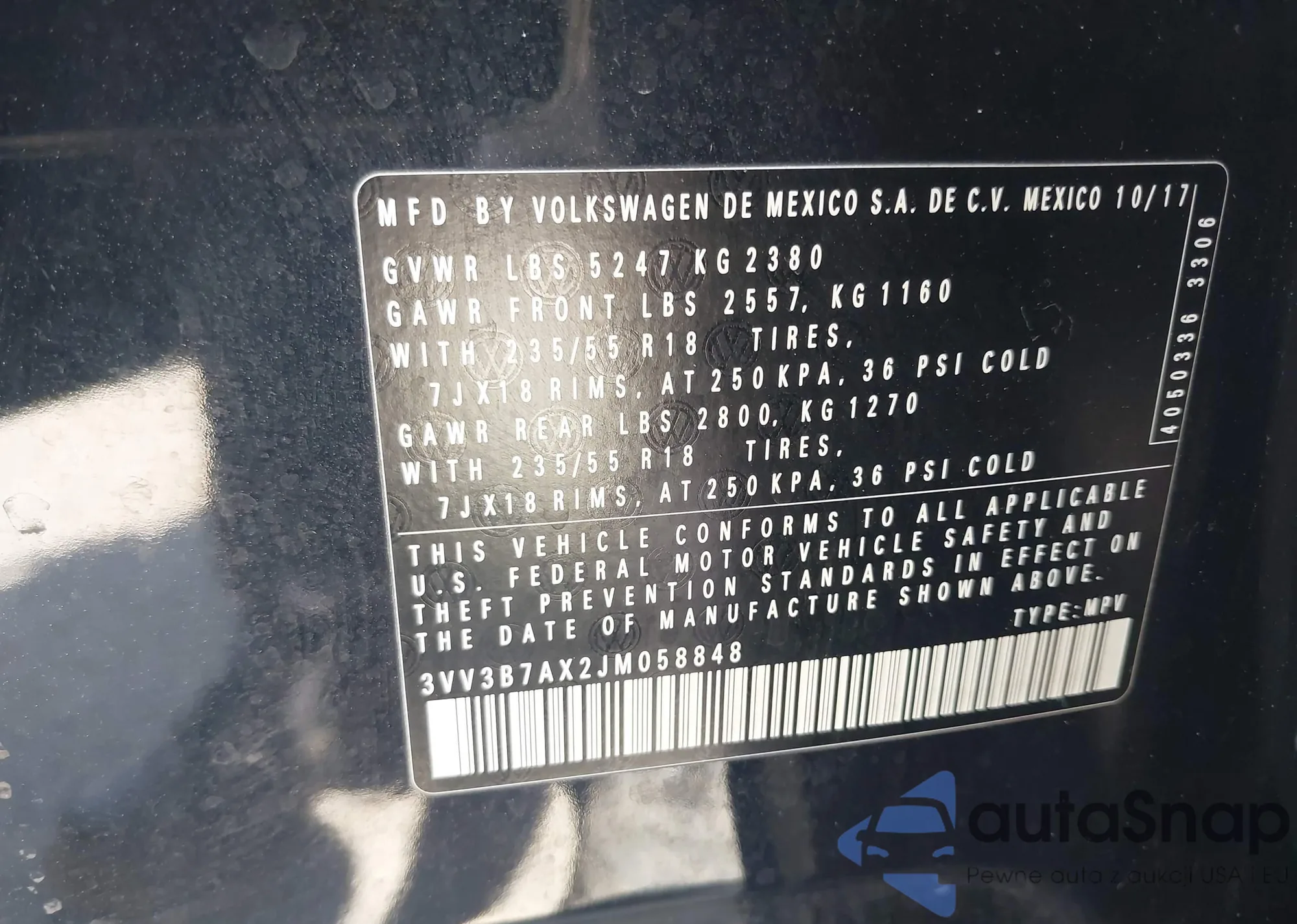 • VIN 3VV3B7AX2JM058848