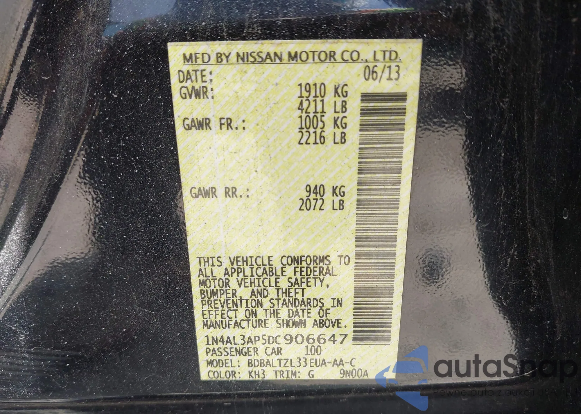 LOT: 42766825 VIN: 1N4AL3AP9DC198550