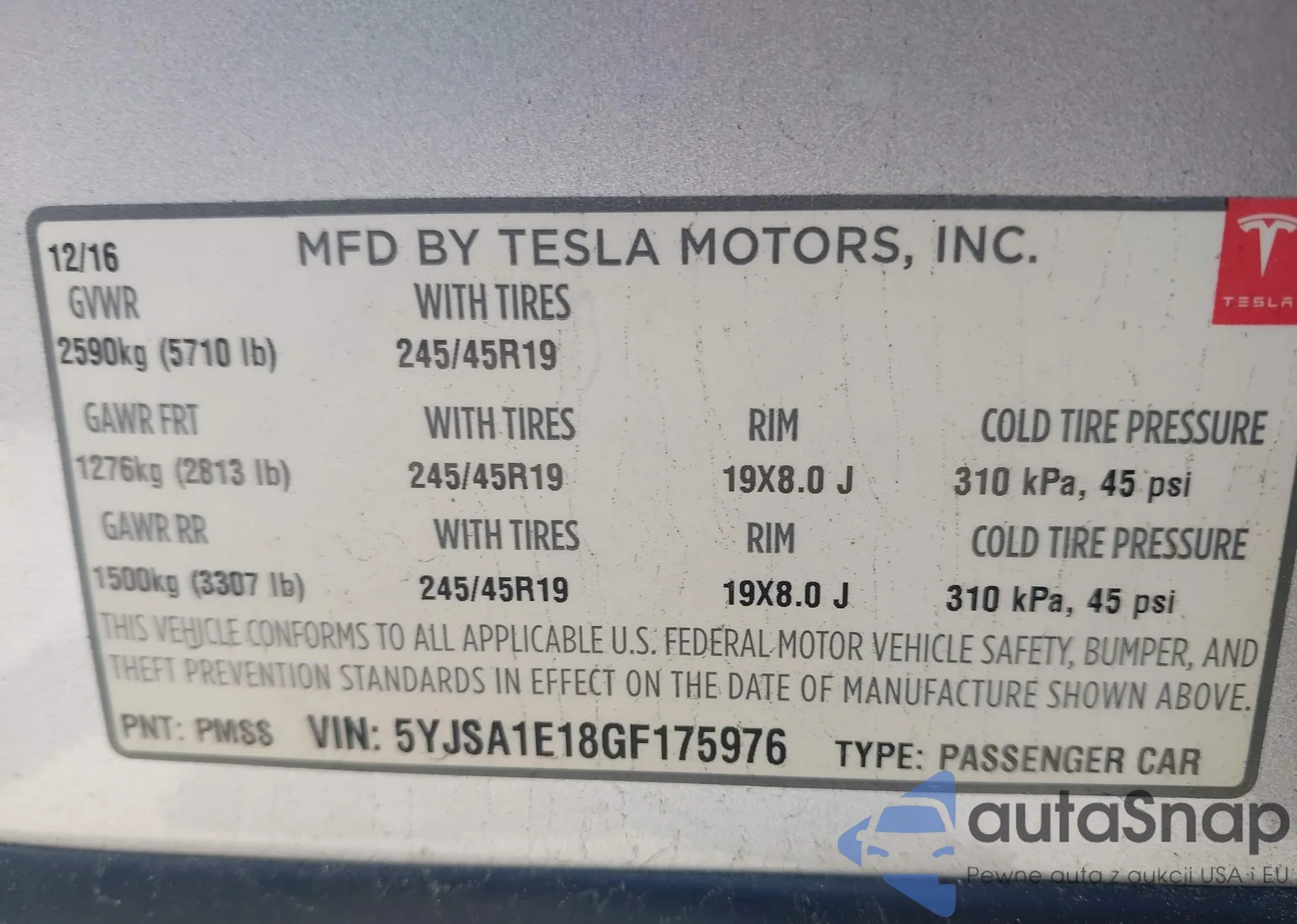 • VIN 5YJSA1E18GF175976