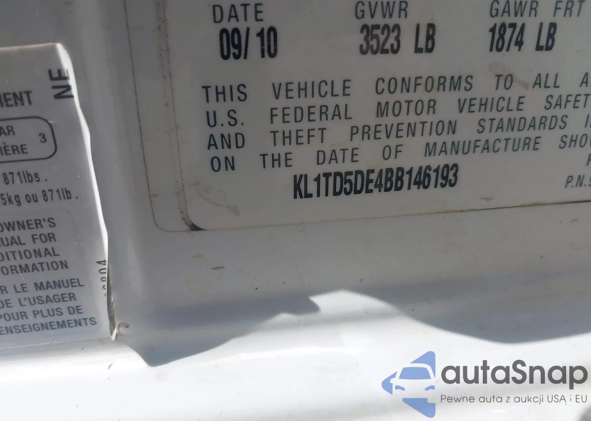 • VIN KL1TD5DE4BB146193