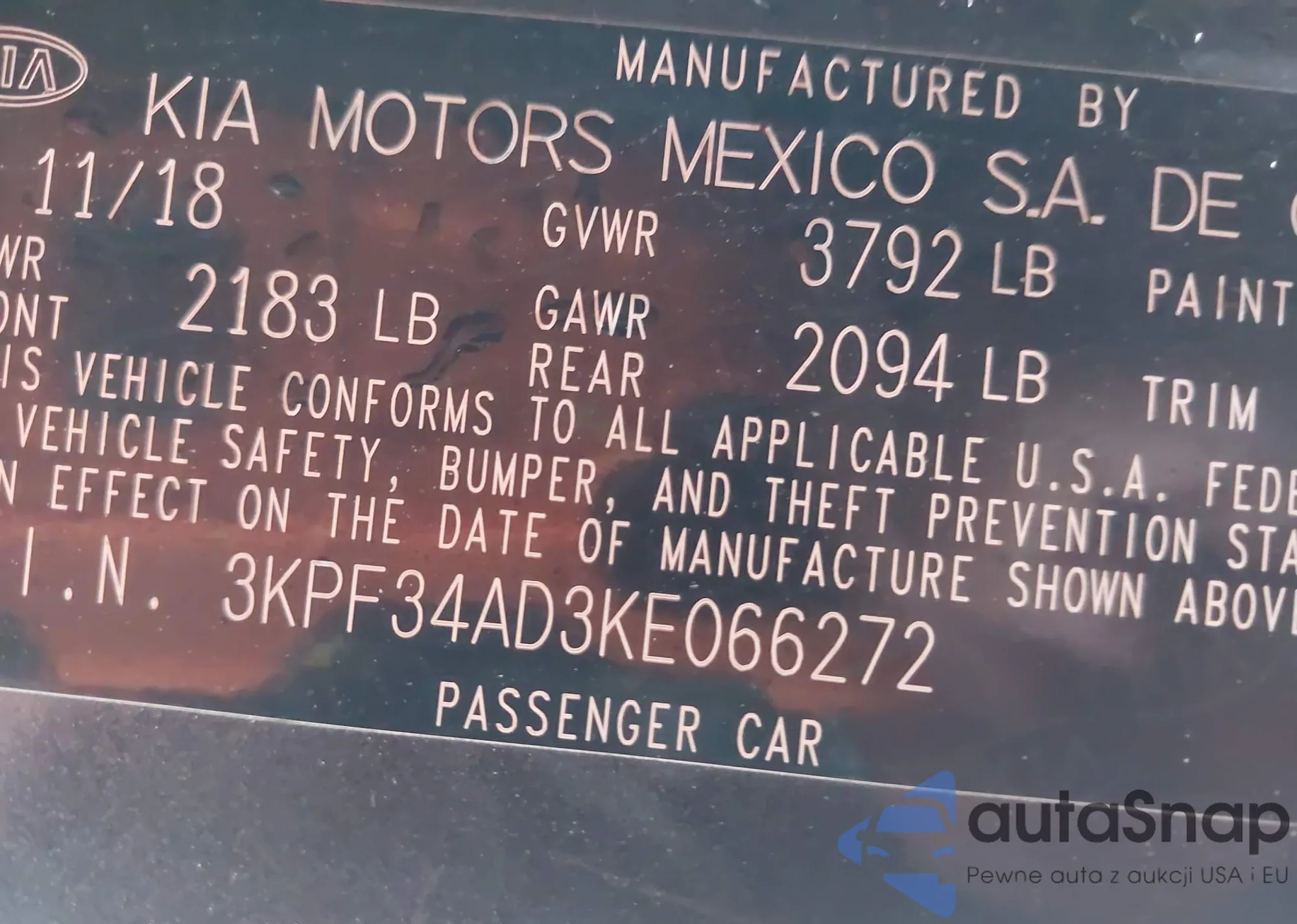 • VIN 3KPF34AD3KE066272