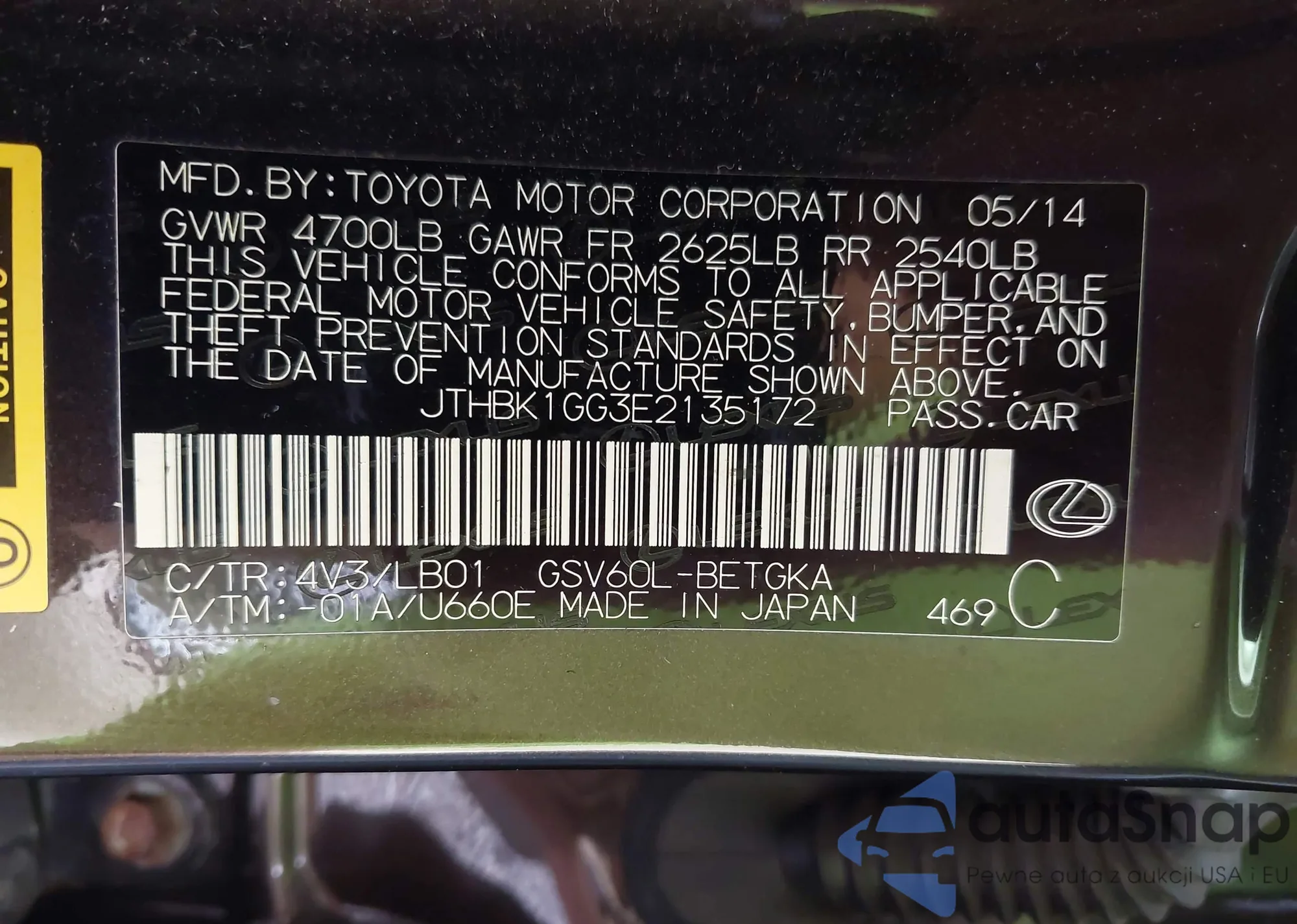 LOT: 42516308 VIN: JTHBK1GG3E2135172