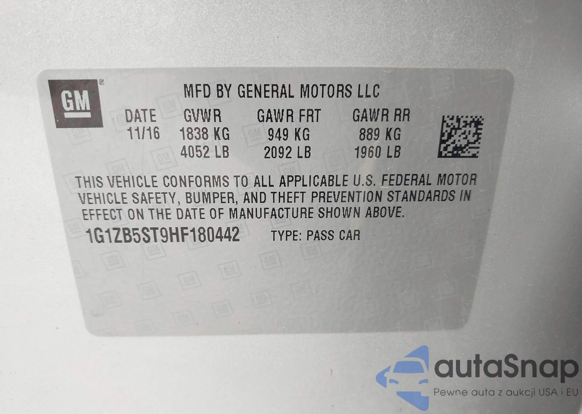 LOT: 42637217 VIN: 1G1ZB5ST9HF180442