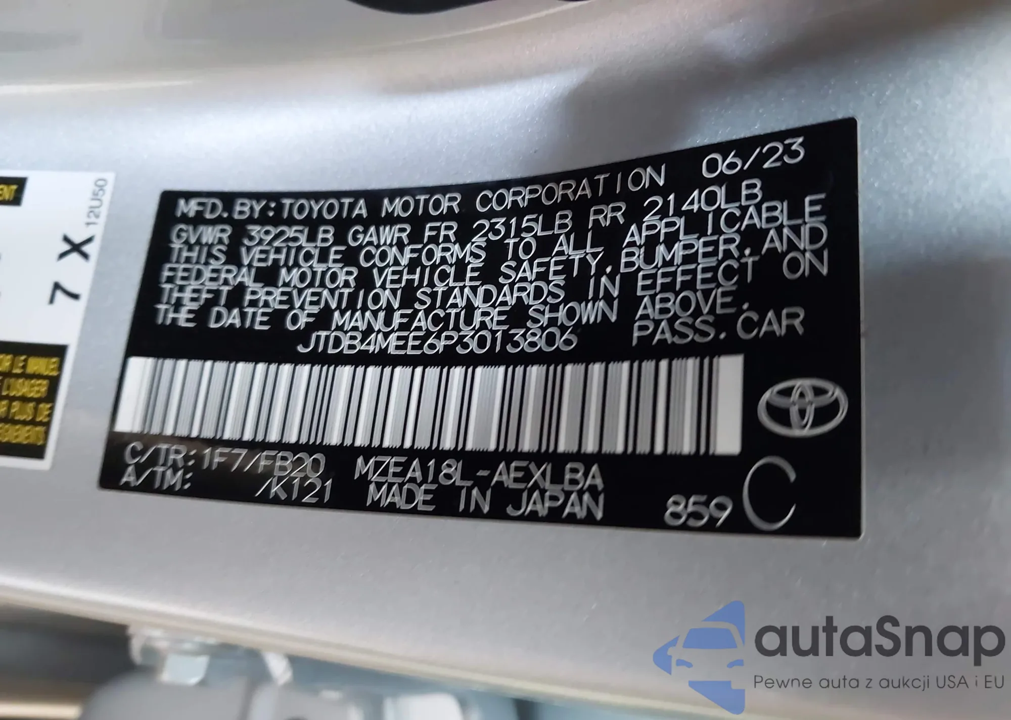 LOT: 42809937 VIN: JTDB4MEE6P3013806