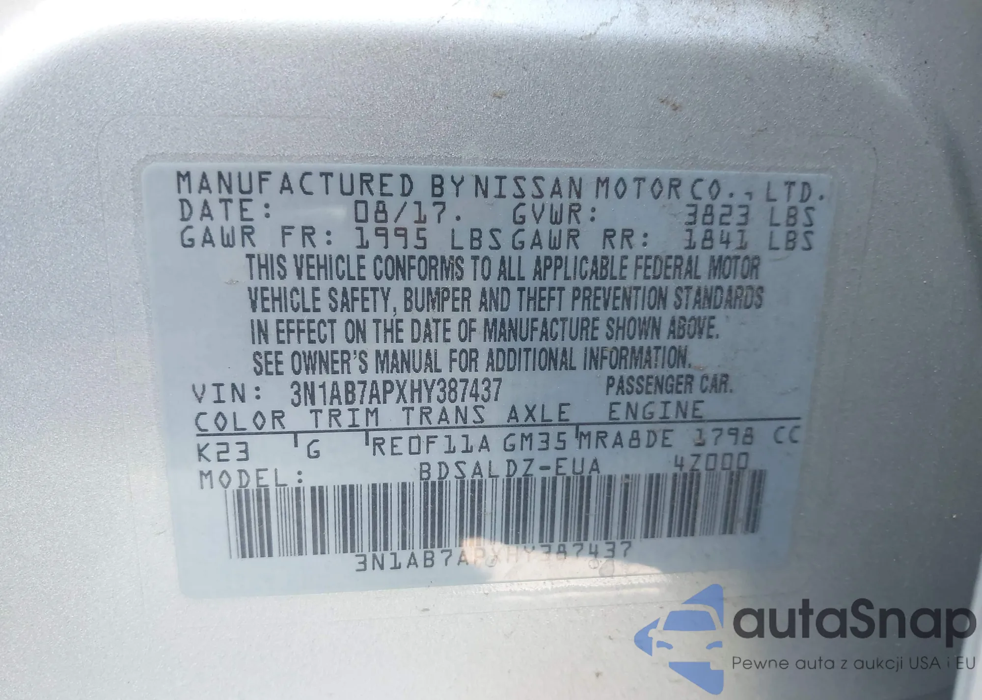 • VIN 3N1AB7APXHY387437