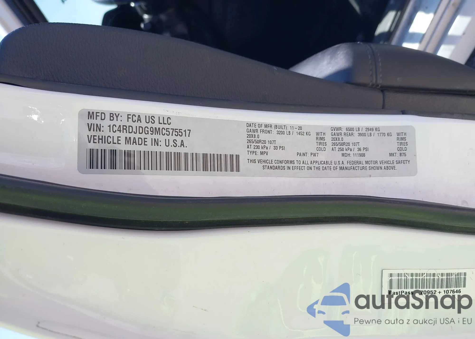 • VIN 1C4RDJDG9MC575517