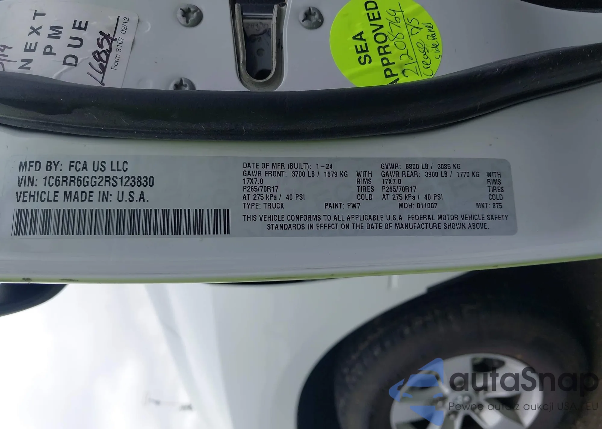 • VIN 1C6RR6GG2RS123830