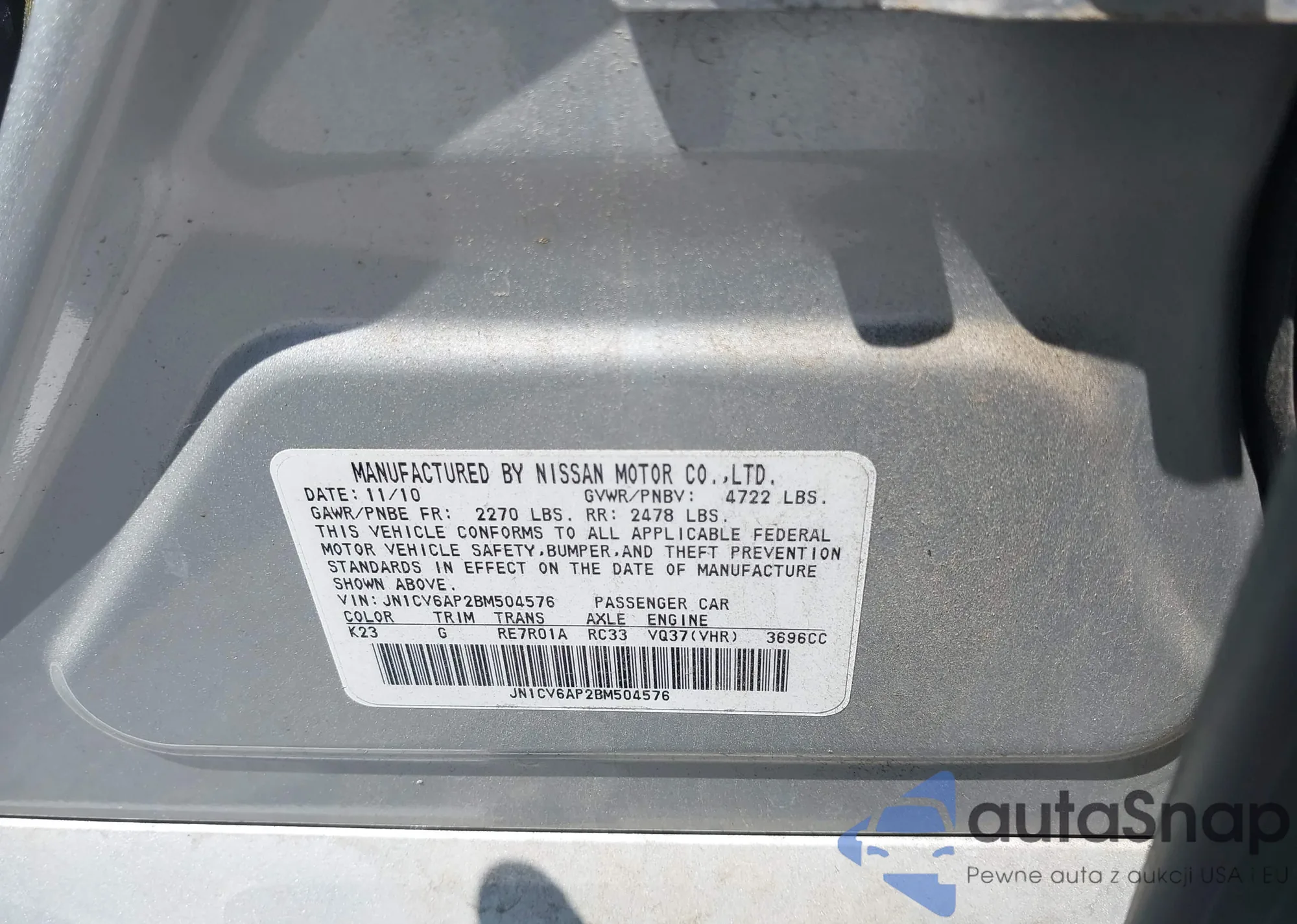 LOT: 42615099 VIN: JN1CV6AP2BM504576