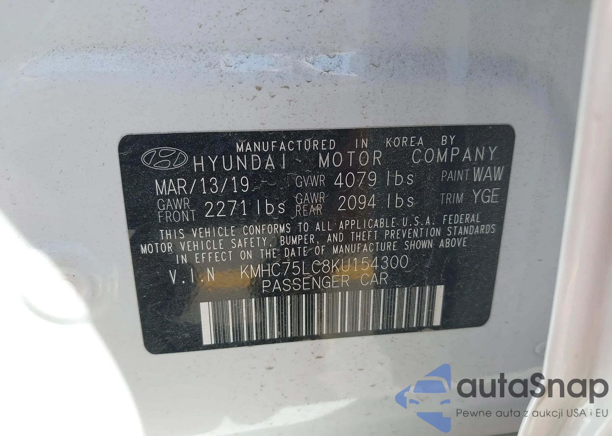 LOT: 42627366 VIN: KMHC75LC8KU154300
