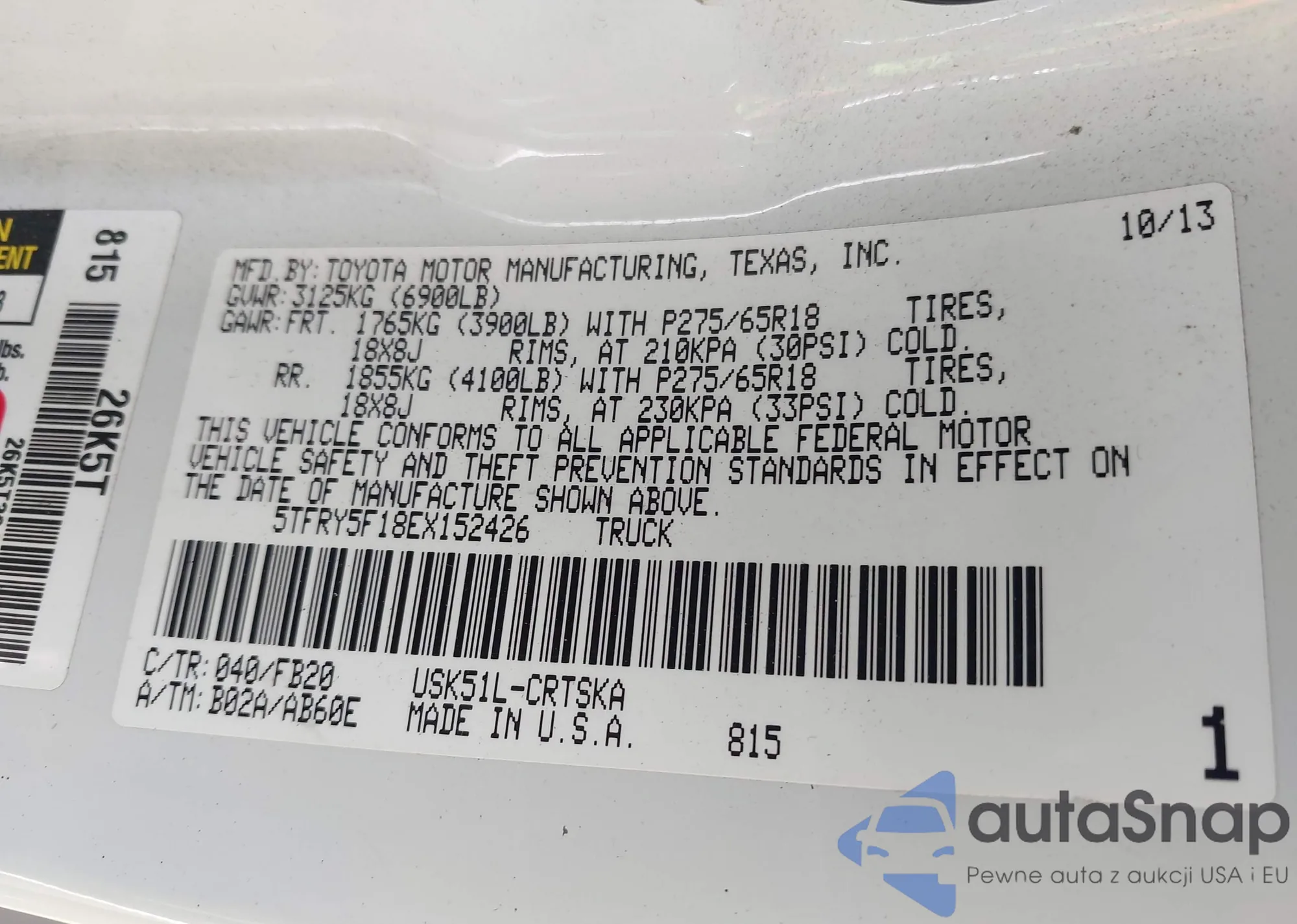 • VIN 5TFRY5F18EX152426