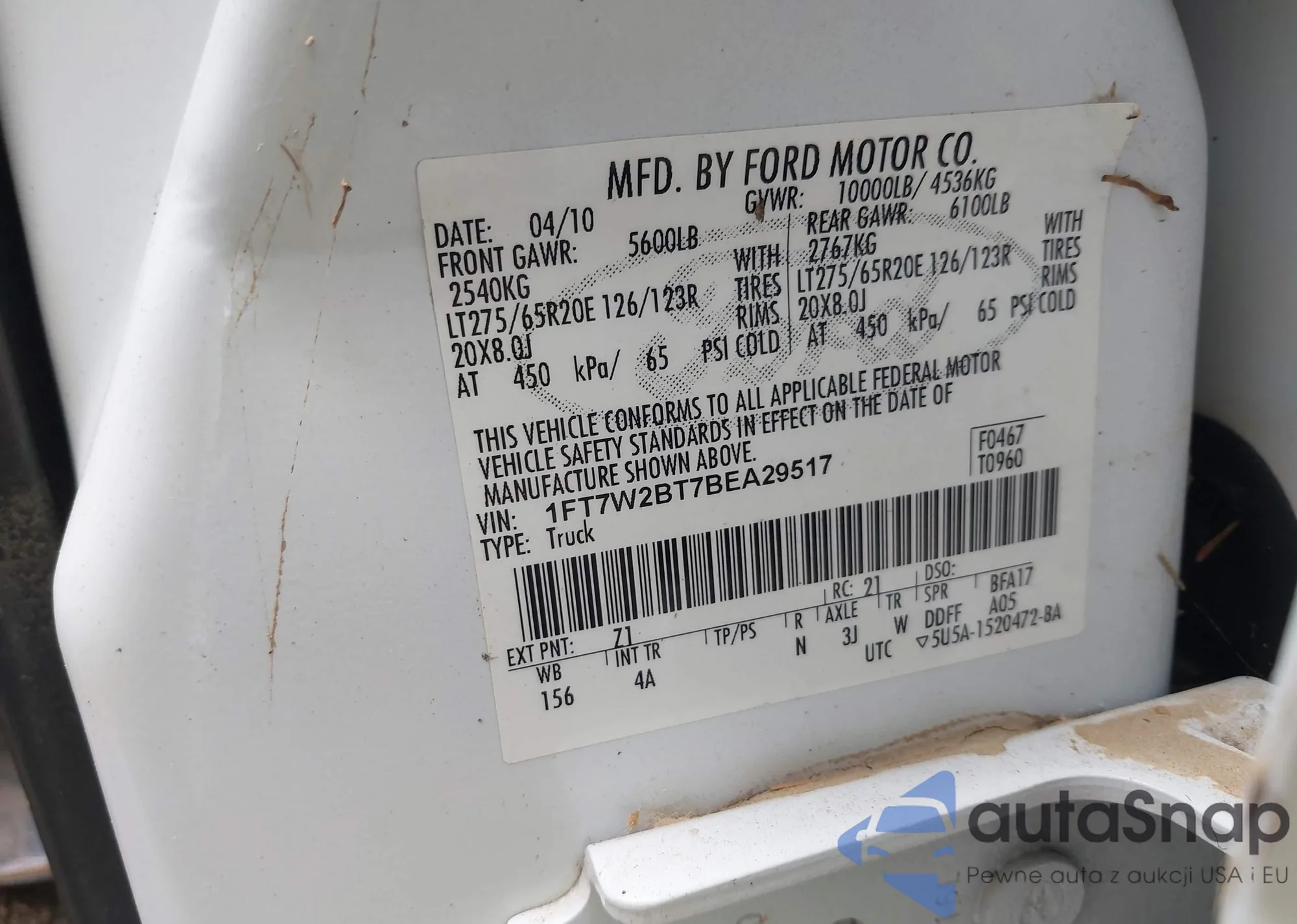 • VIN 1FT7W2BT7BEA29517