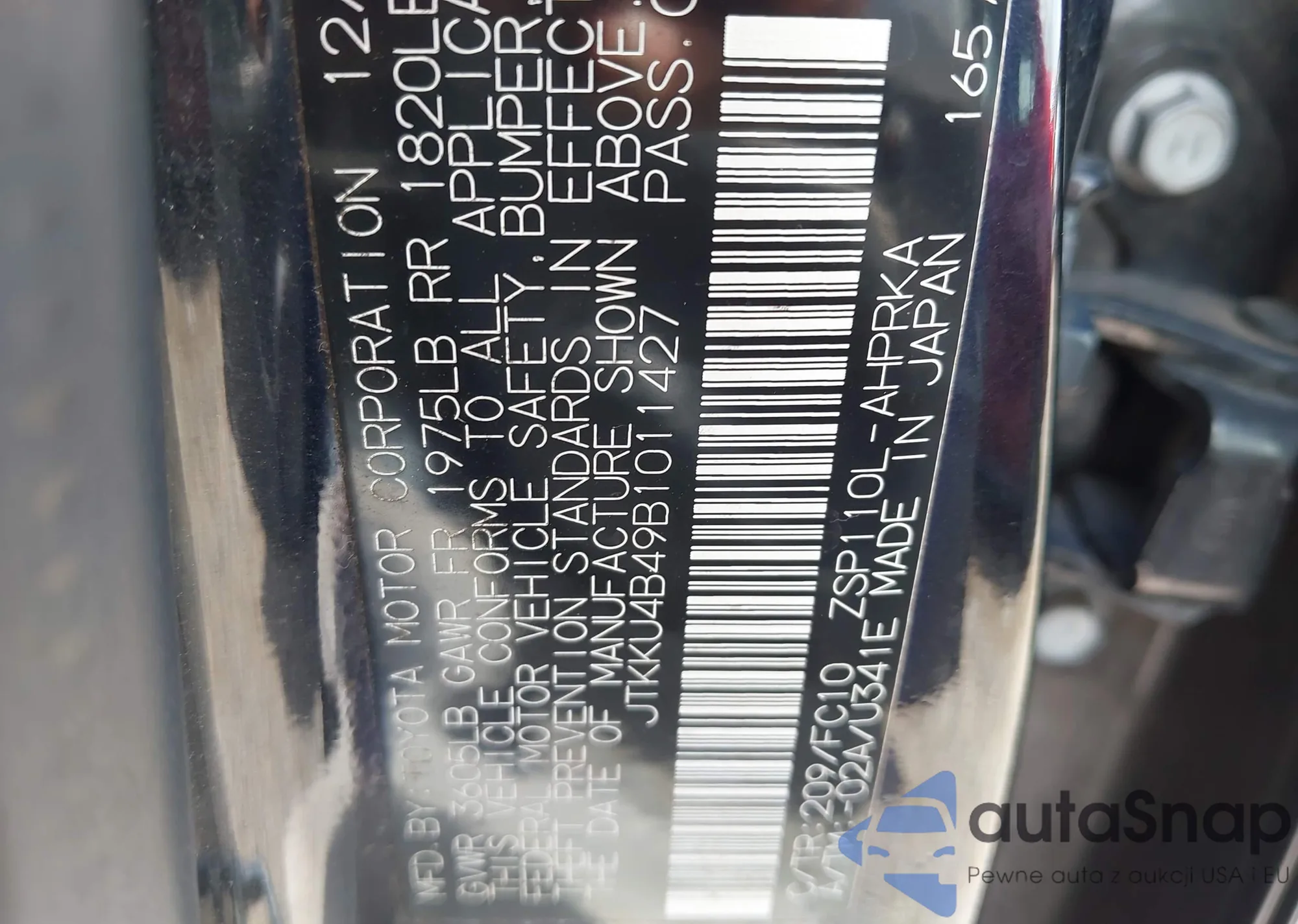 LOT: 42743355 VIN: JTKKU4B49B1011427