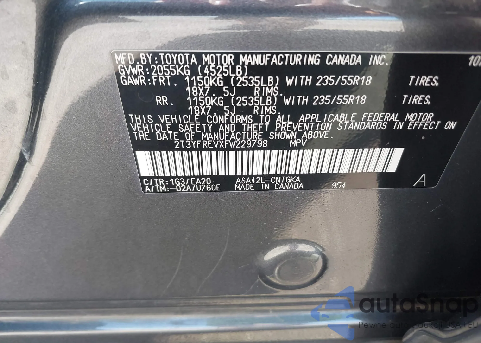 • VIN 2T3YFREVXFW229798
