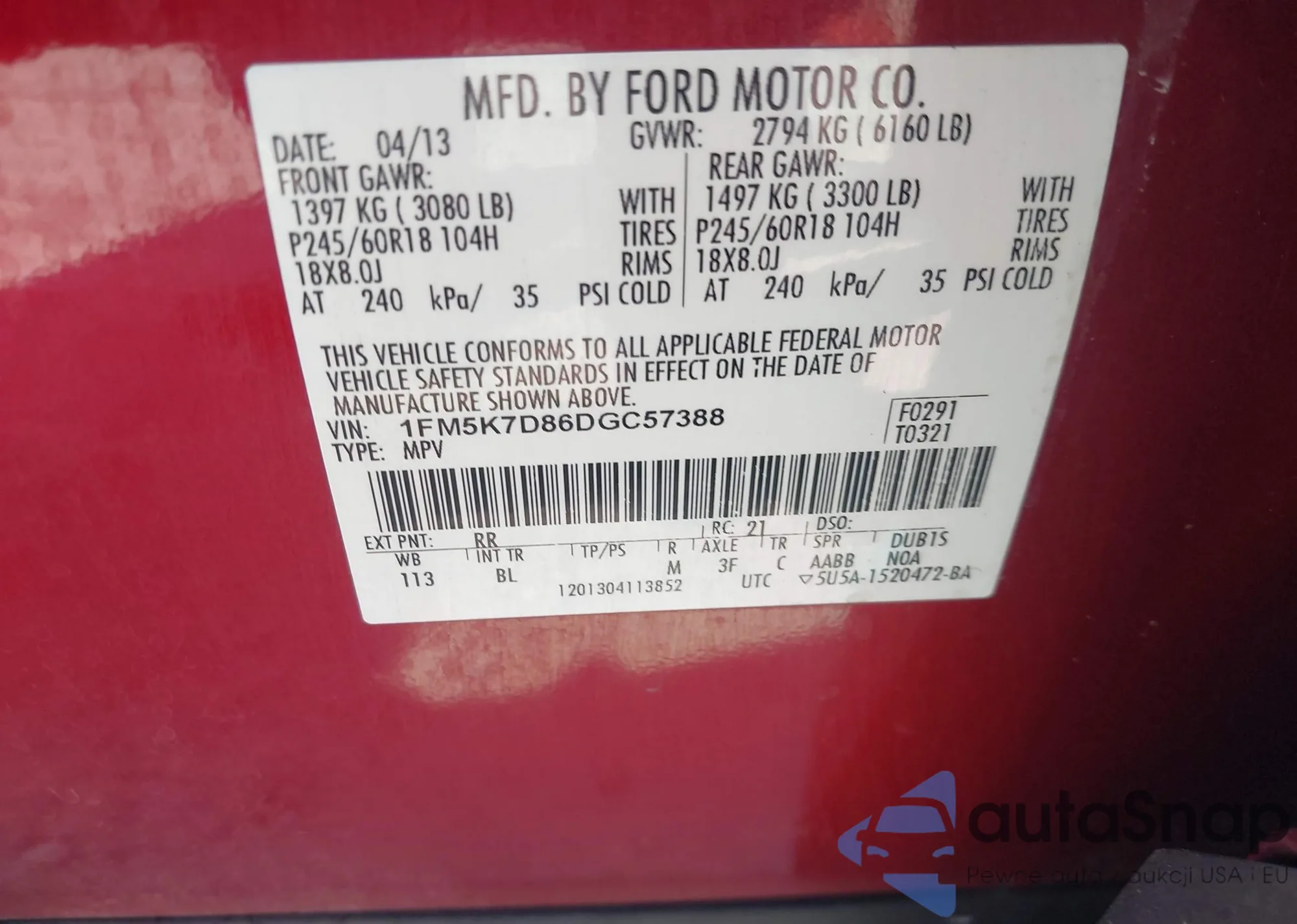 • VIN 1FM5K7D86DGC57388