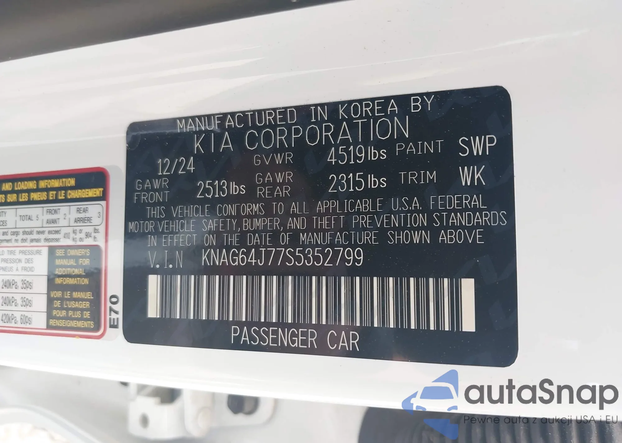 • VIN KNAG64J77S5352799