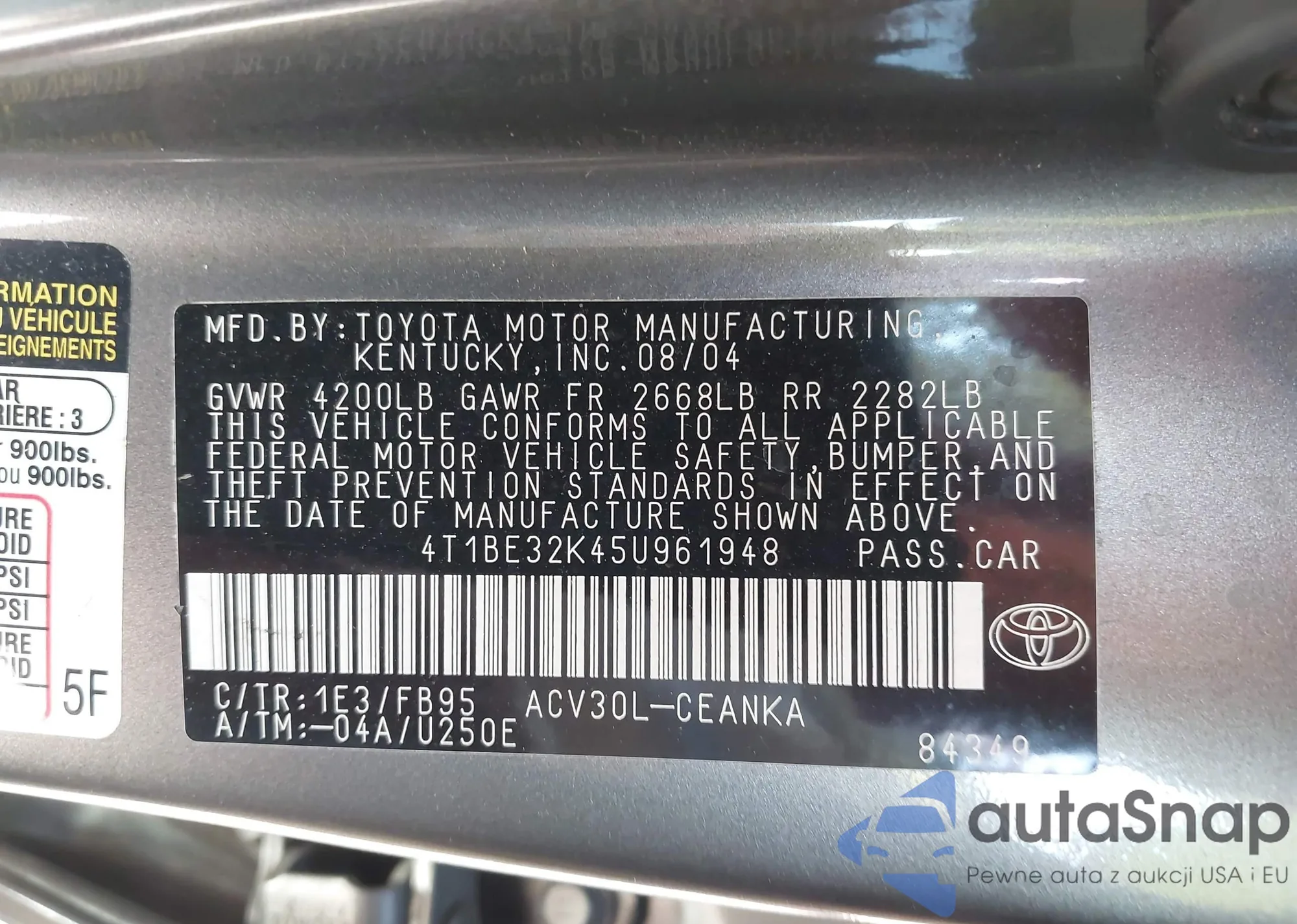 • VIN 4T1BE32K45U961948