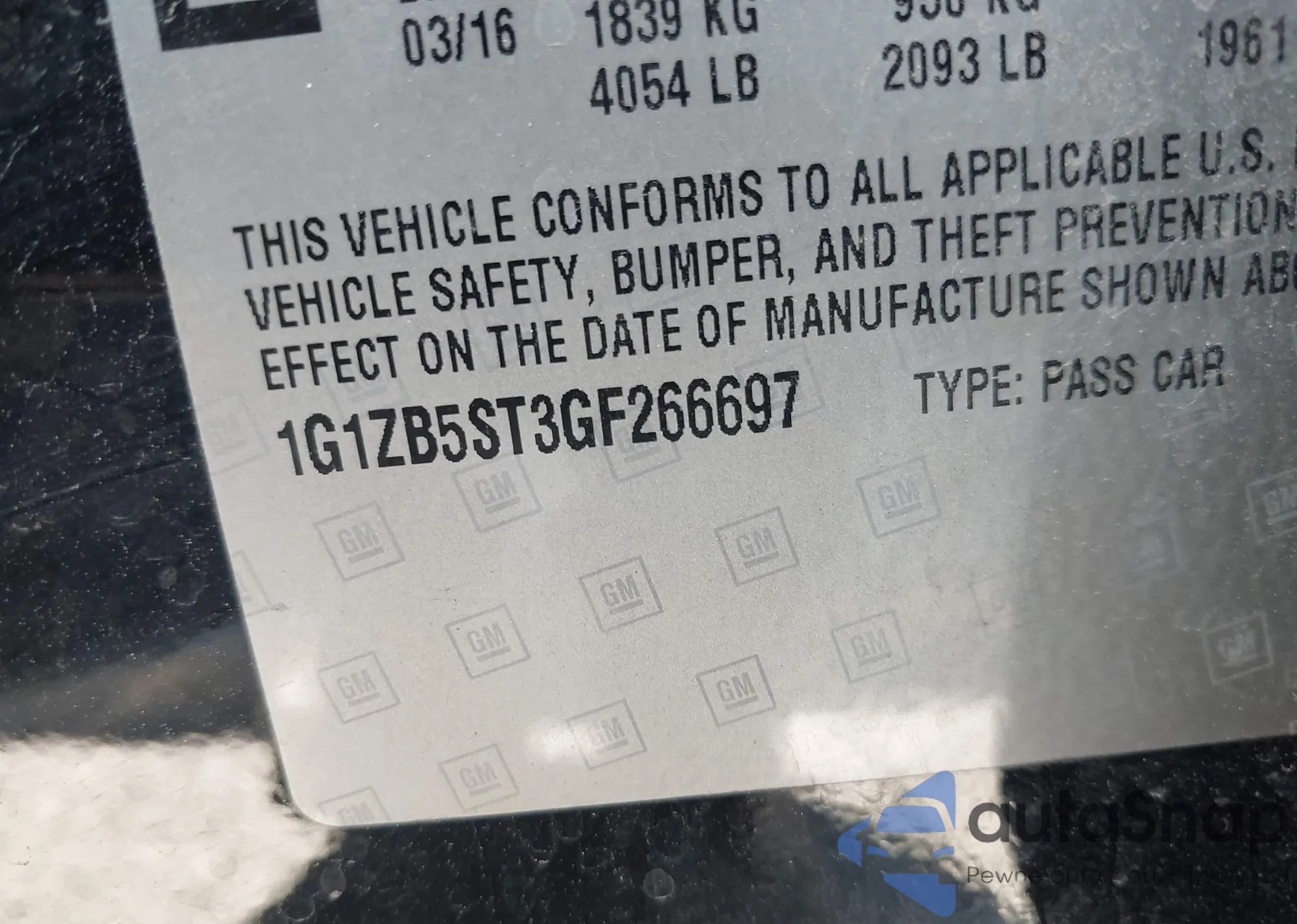 • VIN 1G1ZB5ST3GF266697