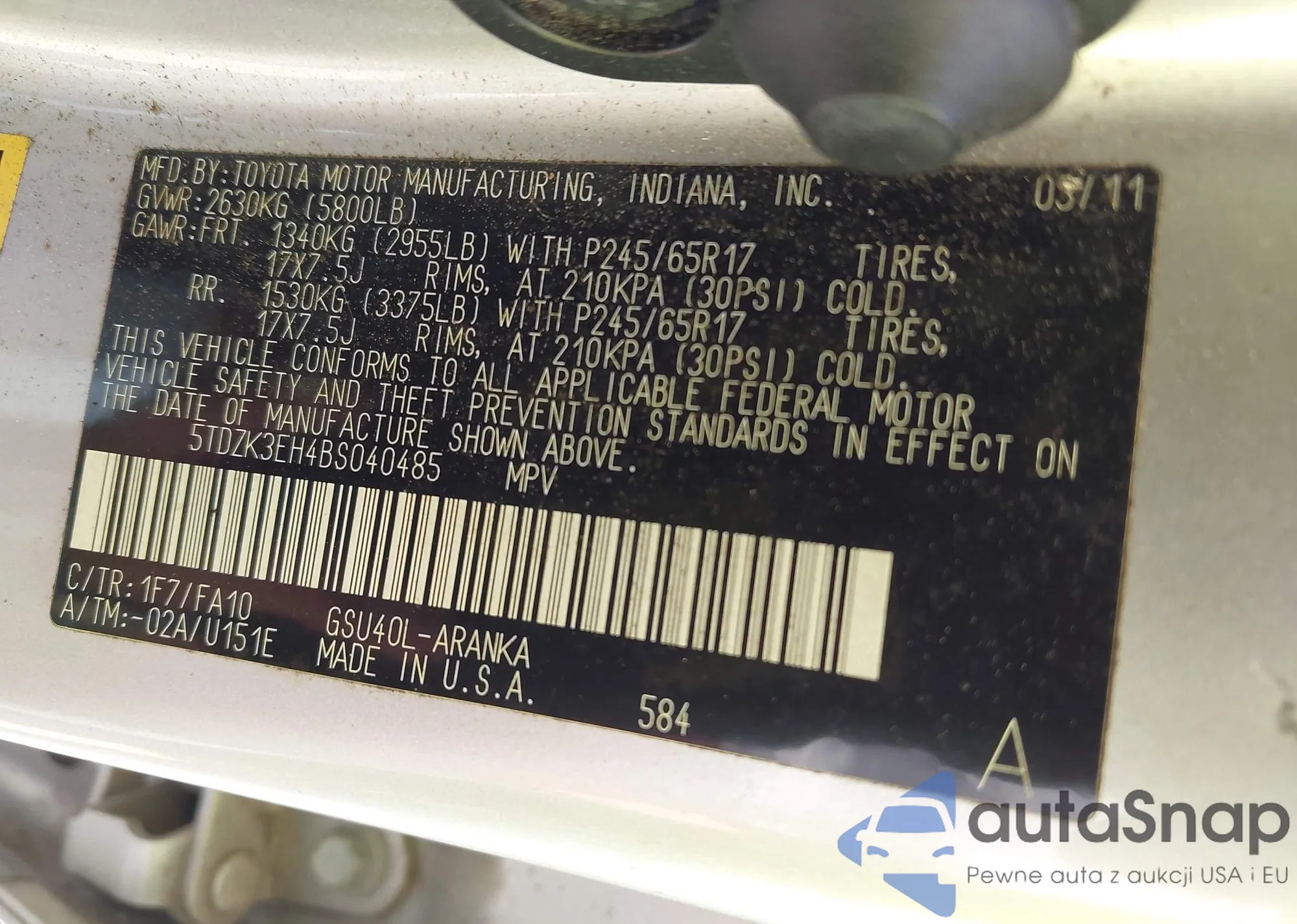LOT: 42689106 VIN: 5TDKK3DC5BS038719