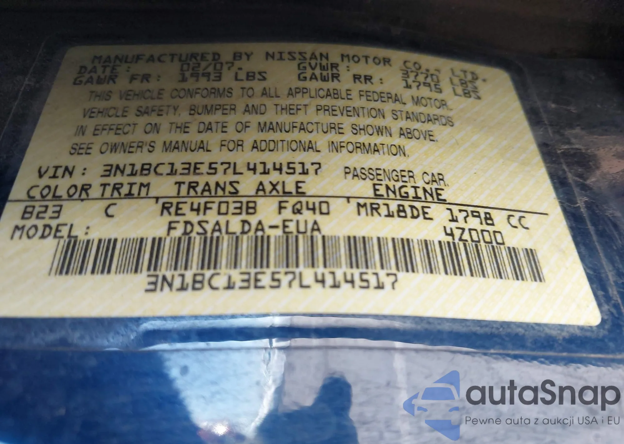 • VIN 3N1BC13E57L414517