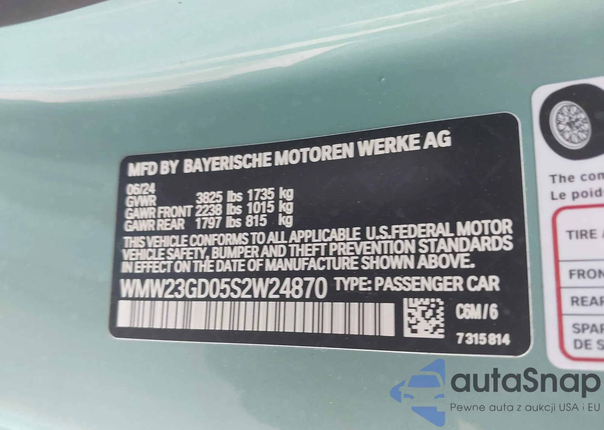 • VIN WMW23GD05S2W24870