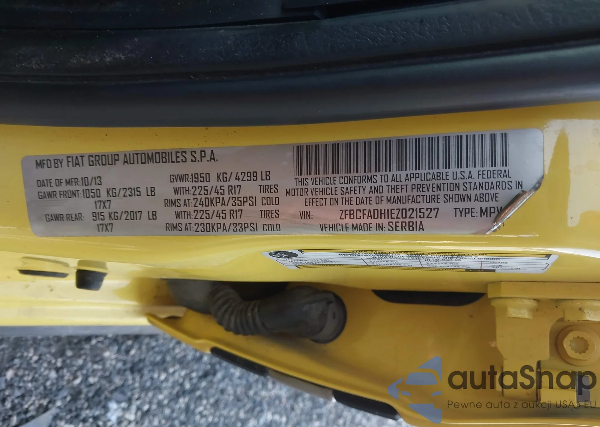 LOT: 42166535 VIN: ZFBCFADH1EZ021527