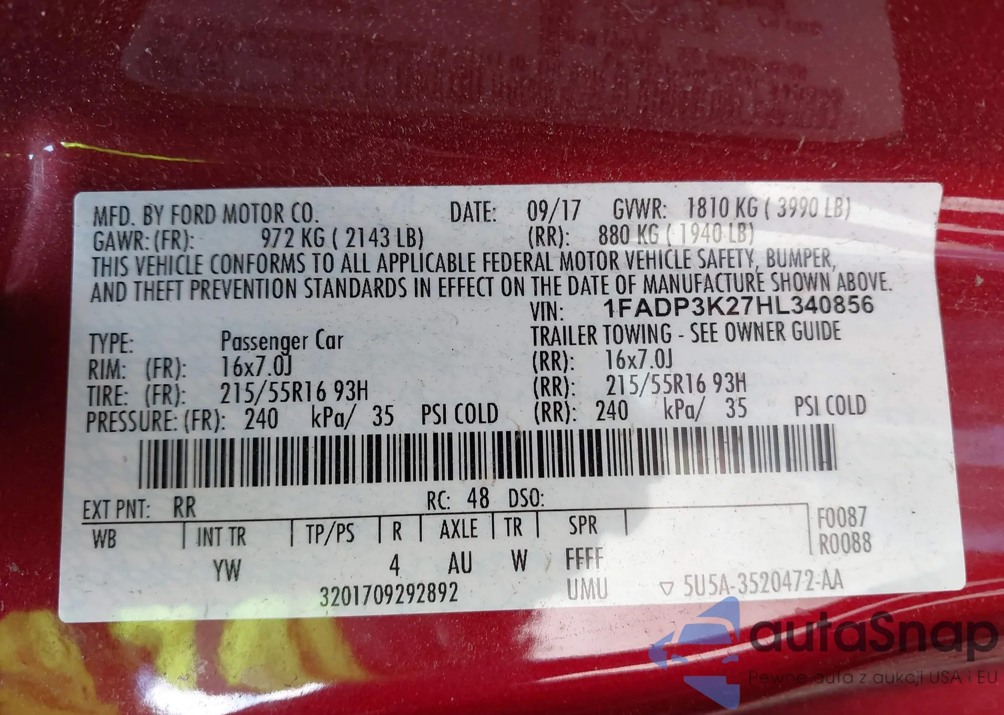 • VIN 1FADP3K27HL340856