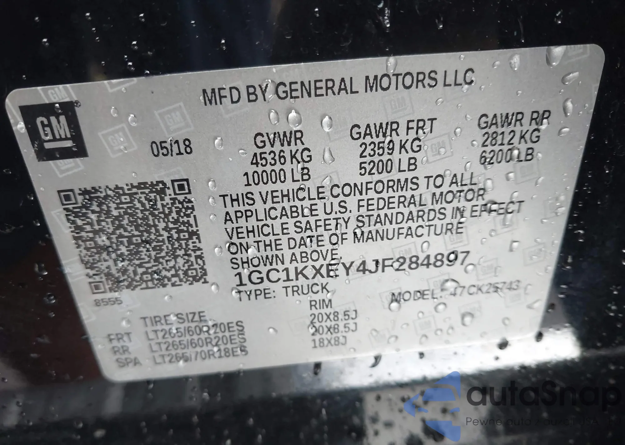• VIN 1GC1KXEY4JF284897