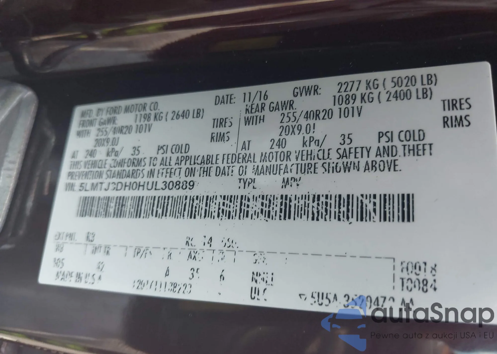• VIN 5LMTJ3DH0HUL30889
