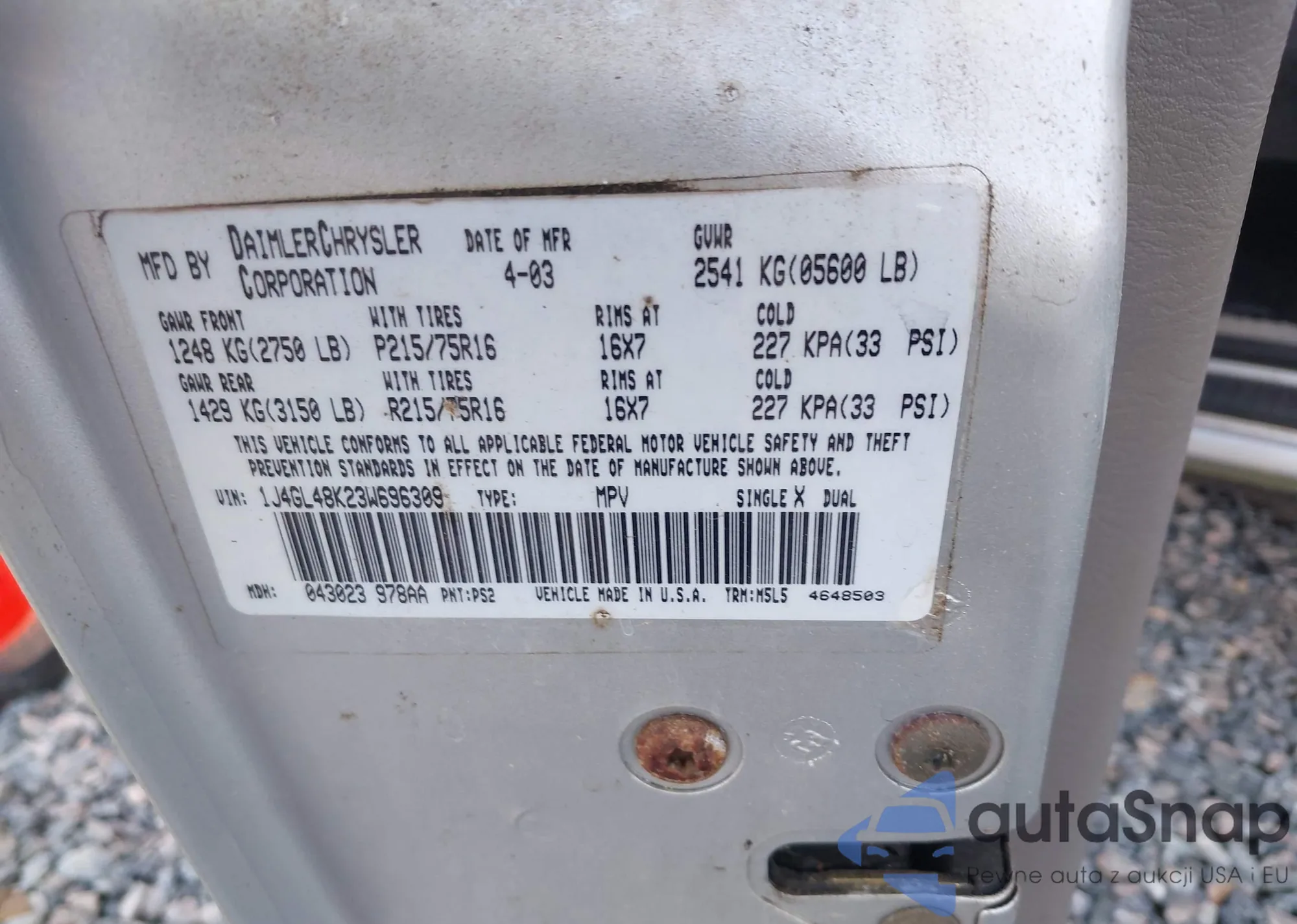 LOT: 42749343 VIN: 1J4GL48K23W696309