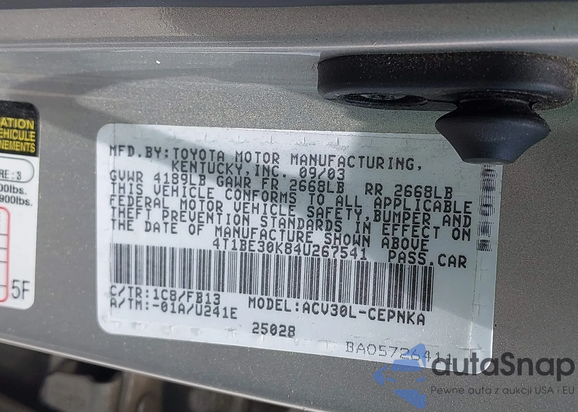 • VIN 4T1BE30K84U267541