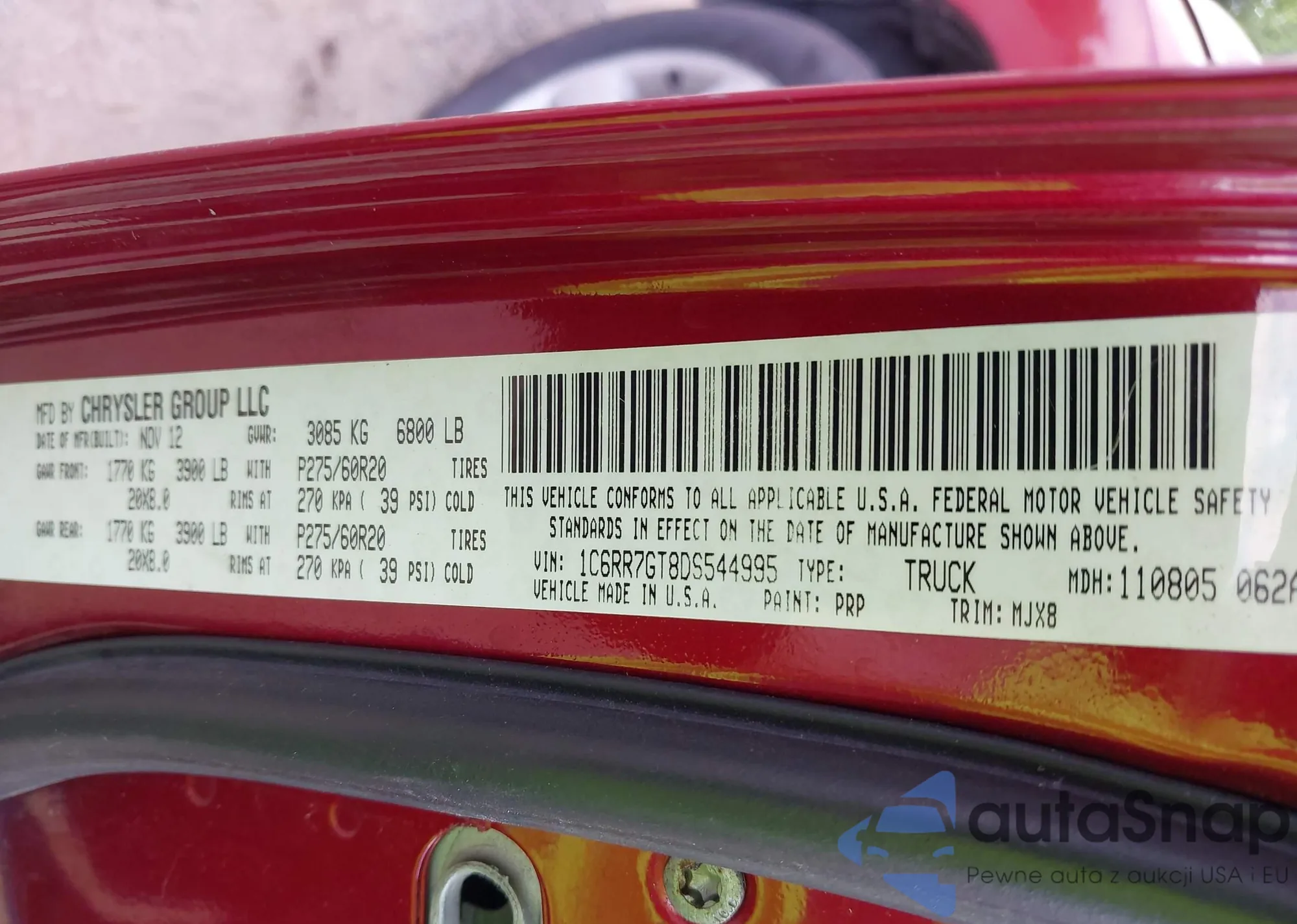 LOT: 42732594 VIN: KM8J3CA48HU506044