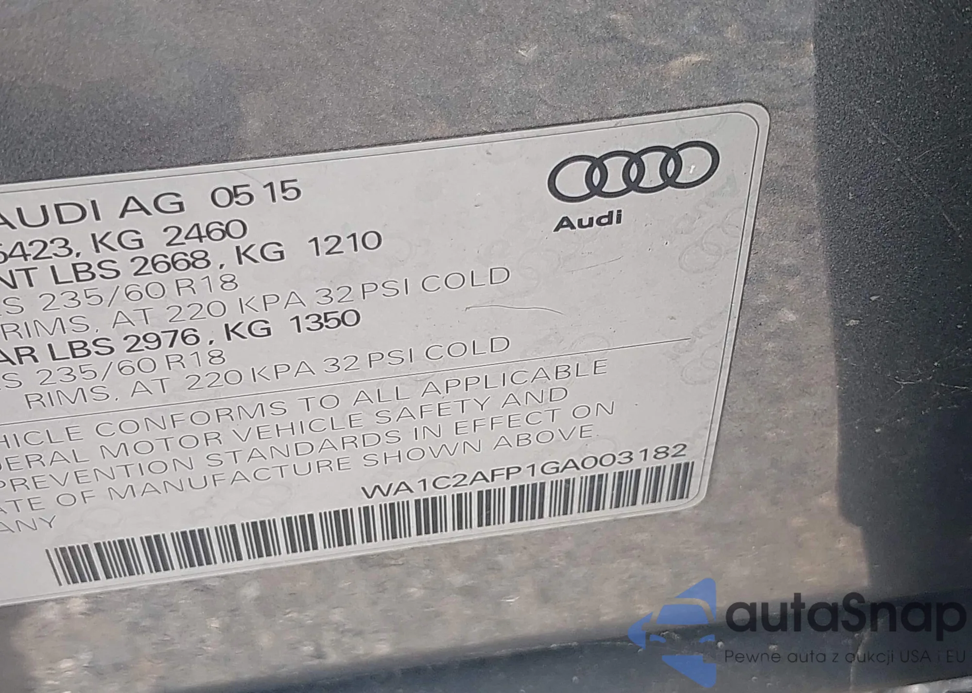 • VIN WA1C2AFP1GA003182