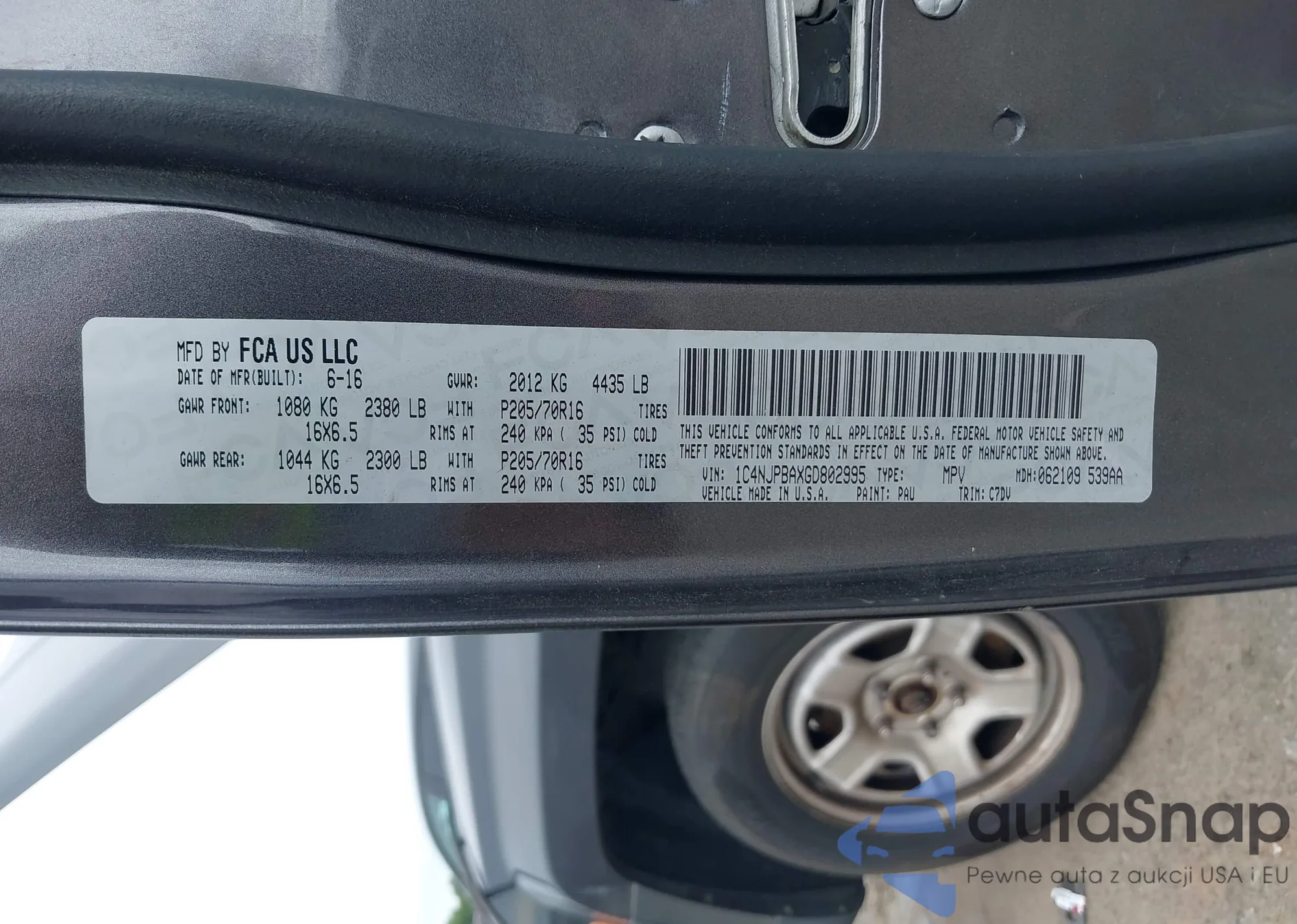 LOT: 42291391 VIN: 1C4NJPBAXGD802995