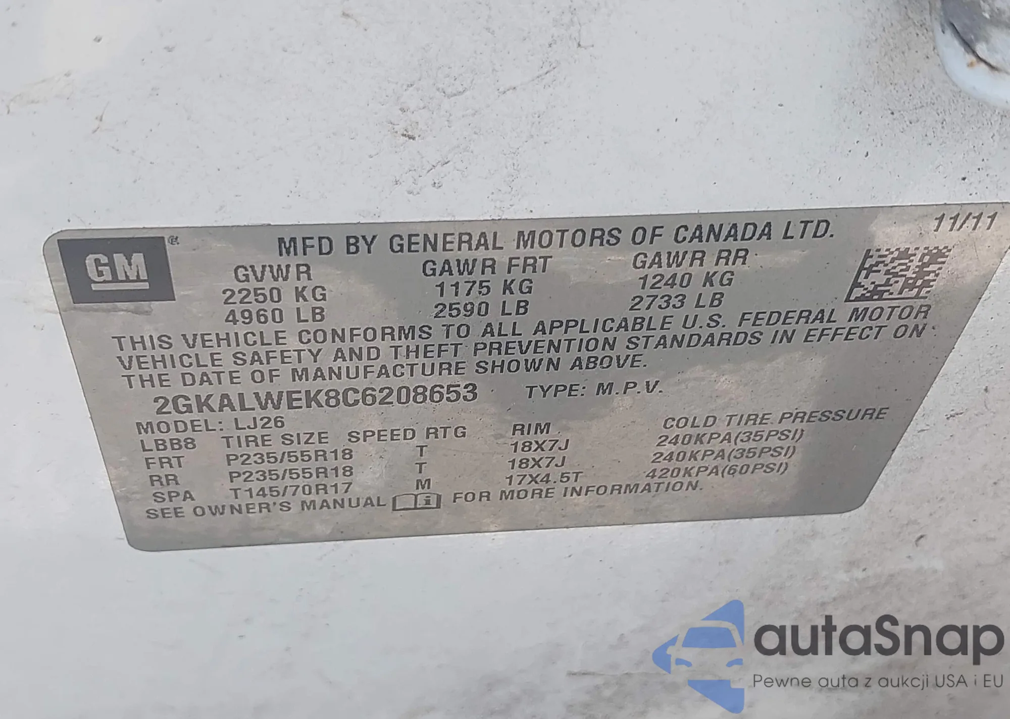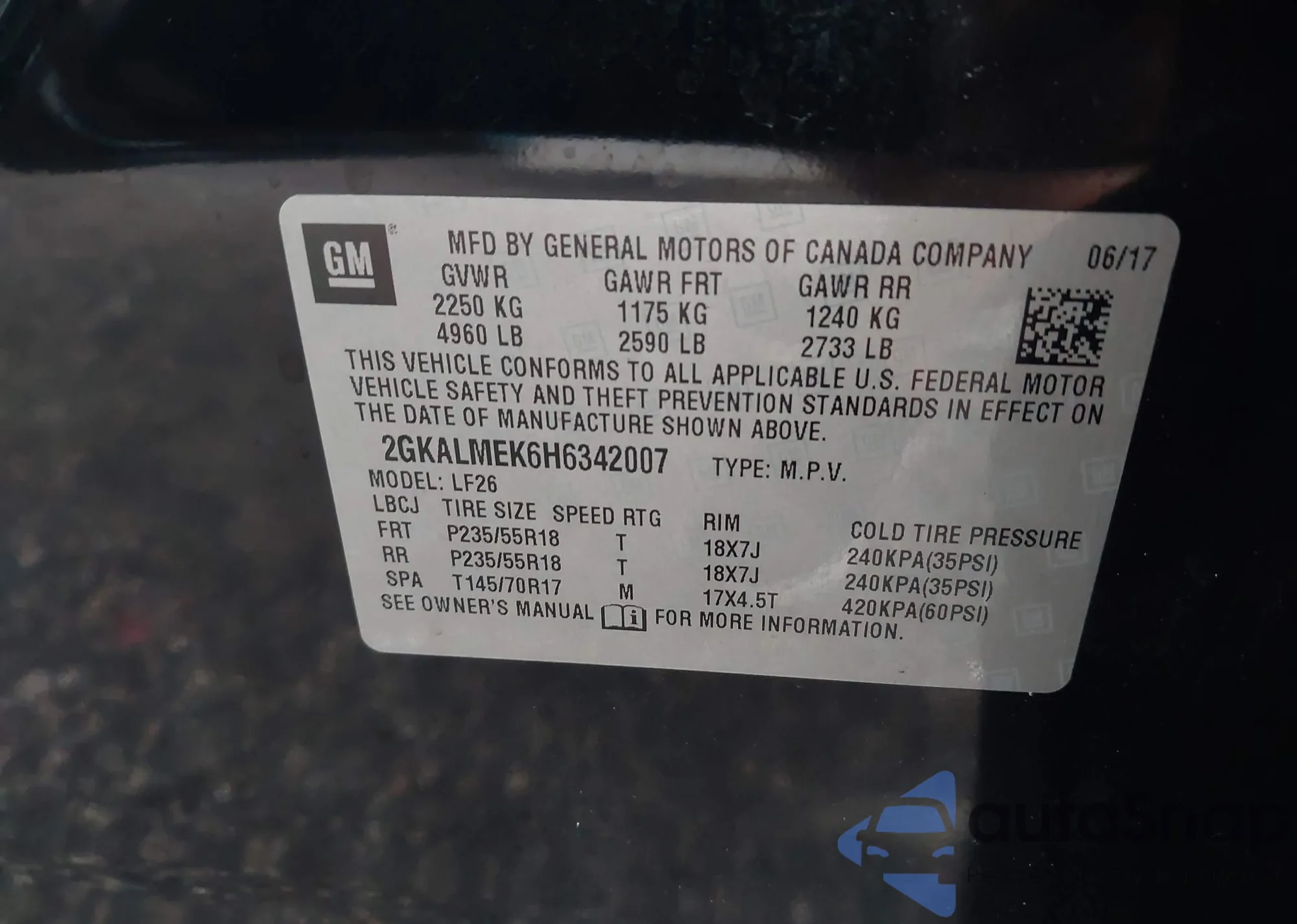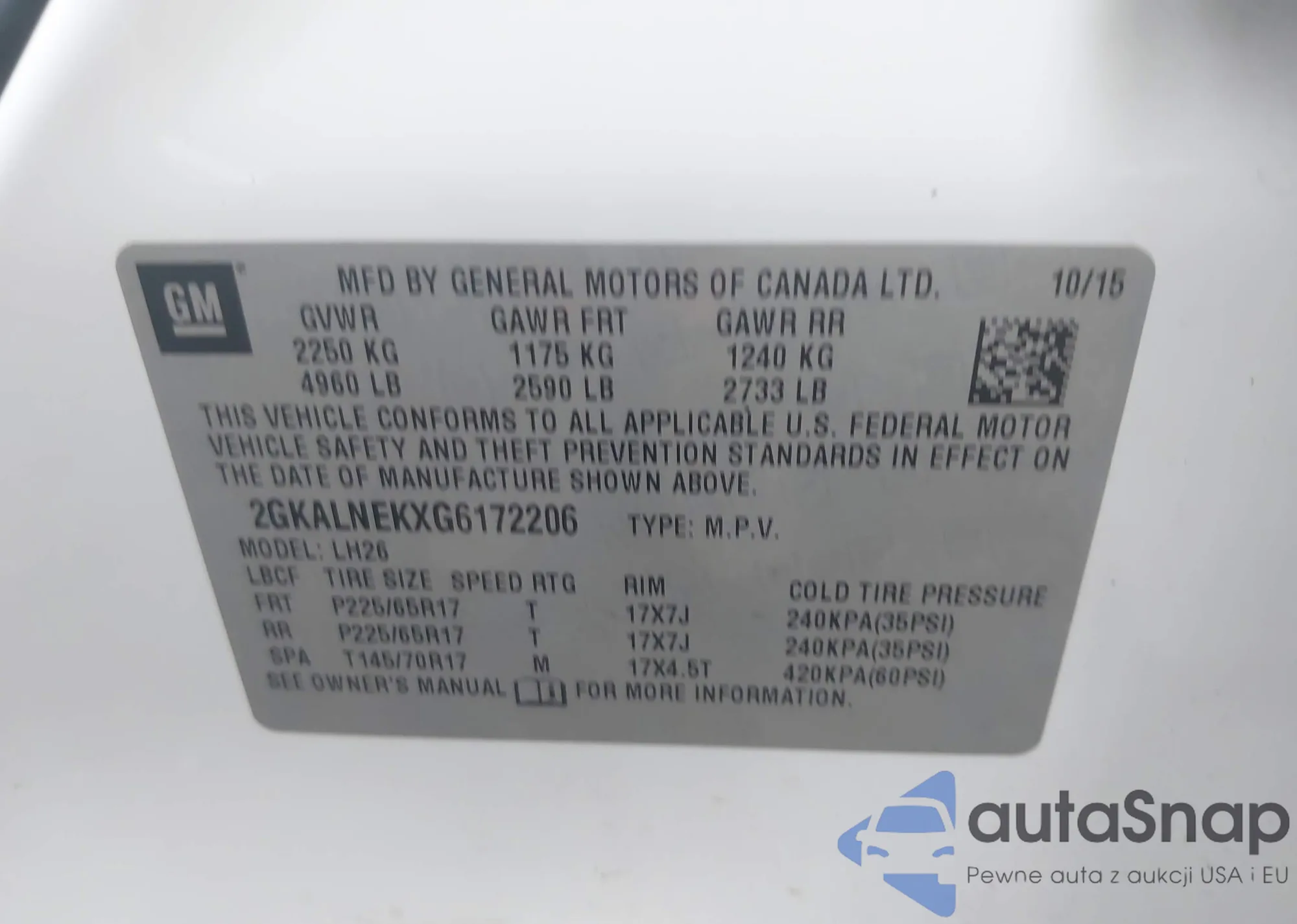 • VIN 2GKALNEKXG6172206
