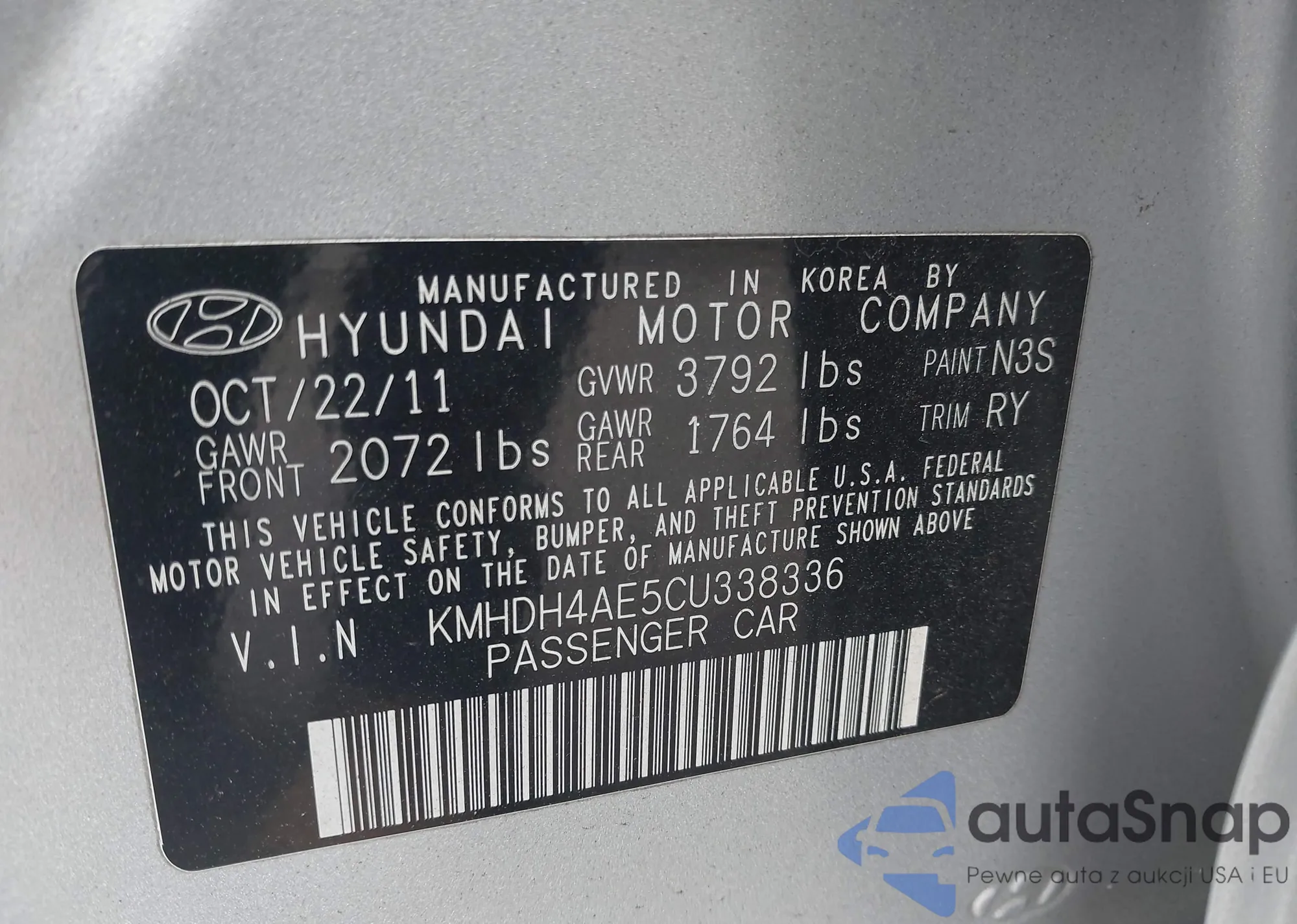 LOT: 42314901 VIN: KMHGN4JB4JU225812
