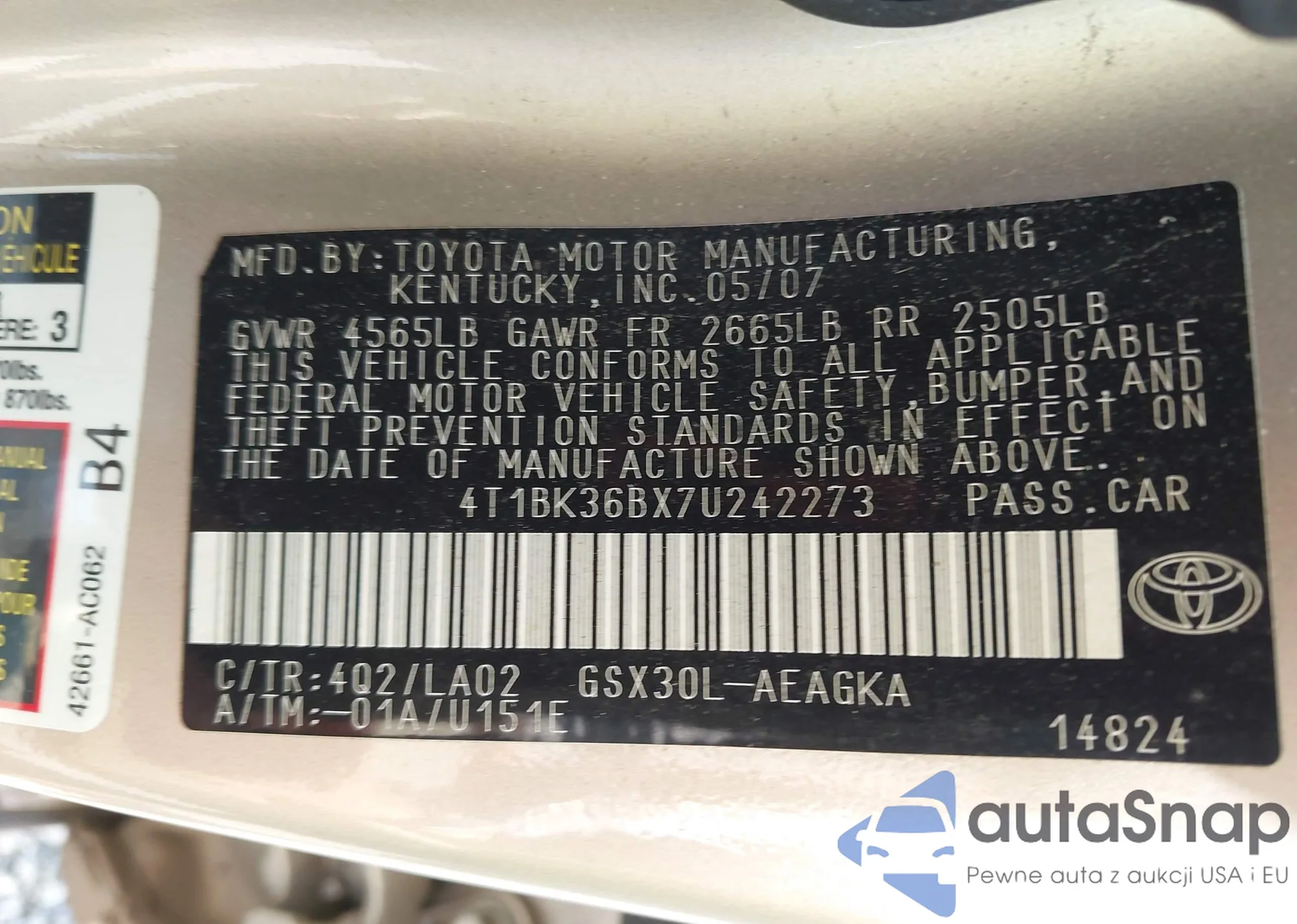 • VIN 4T1BK36BX7U242273