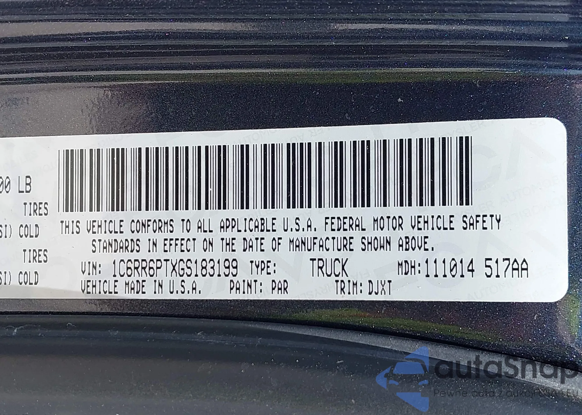• VIN 3C6UR5DL9KG534502