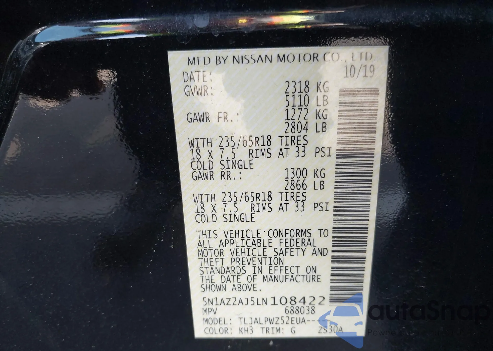 • VIN 5N1AZ2AJ5LN108422