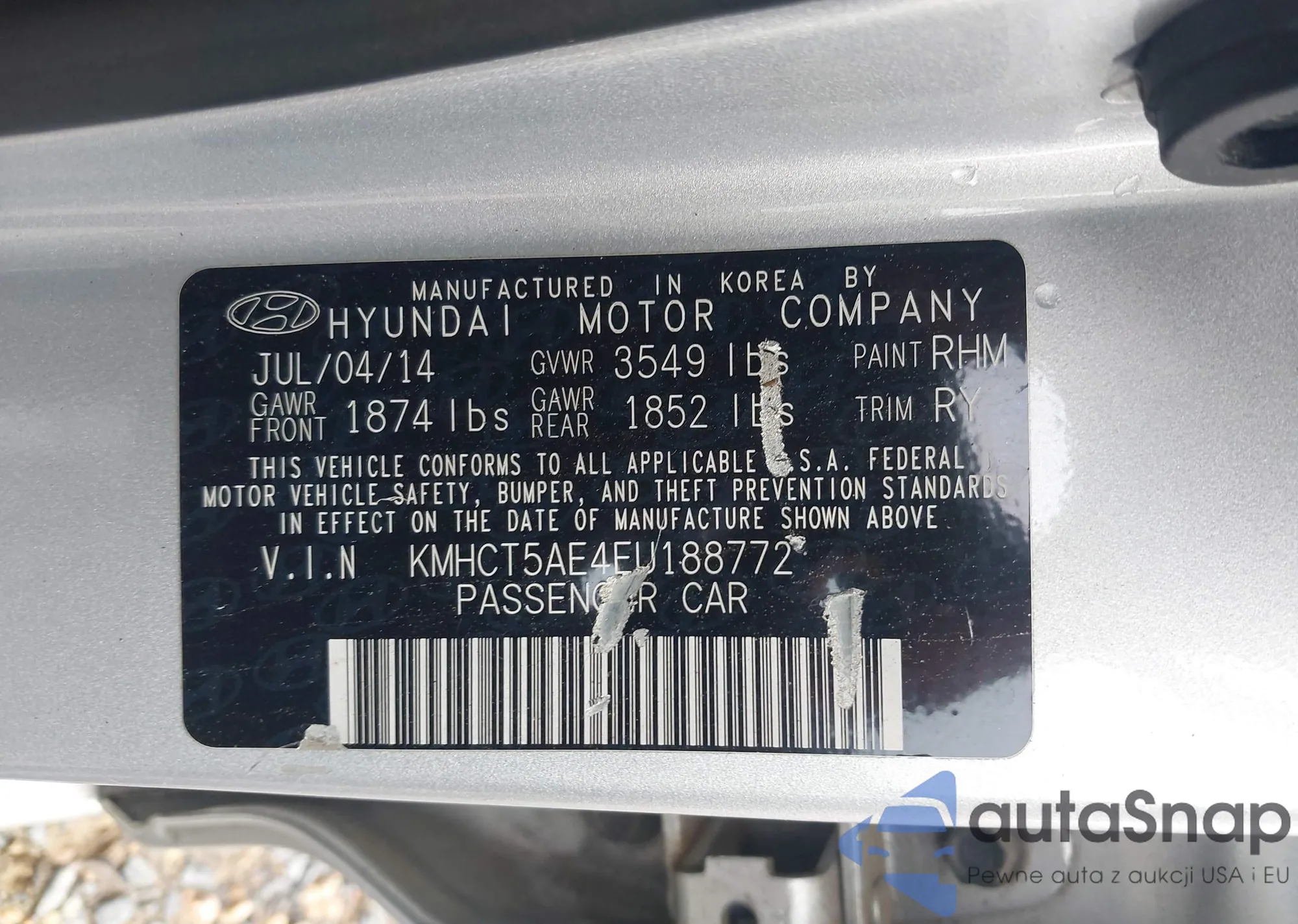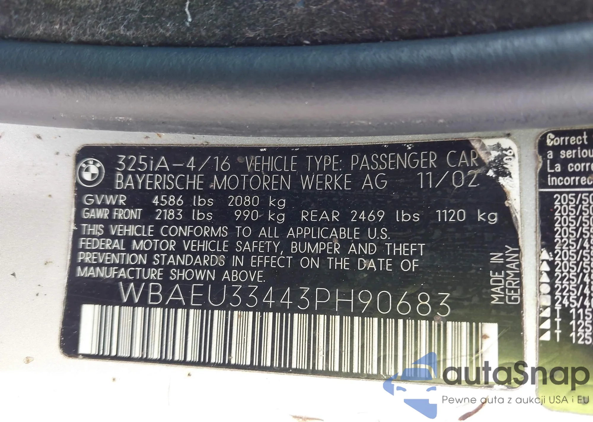LOT: 42741918 VIN: WBAEU33443PH90683