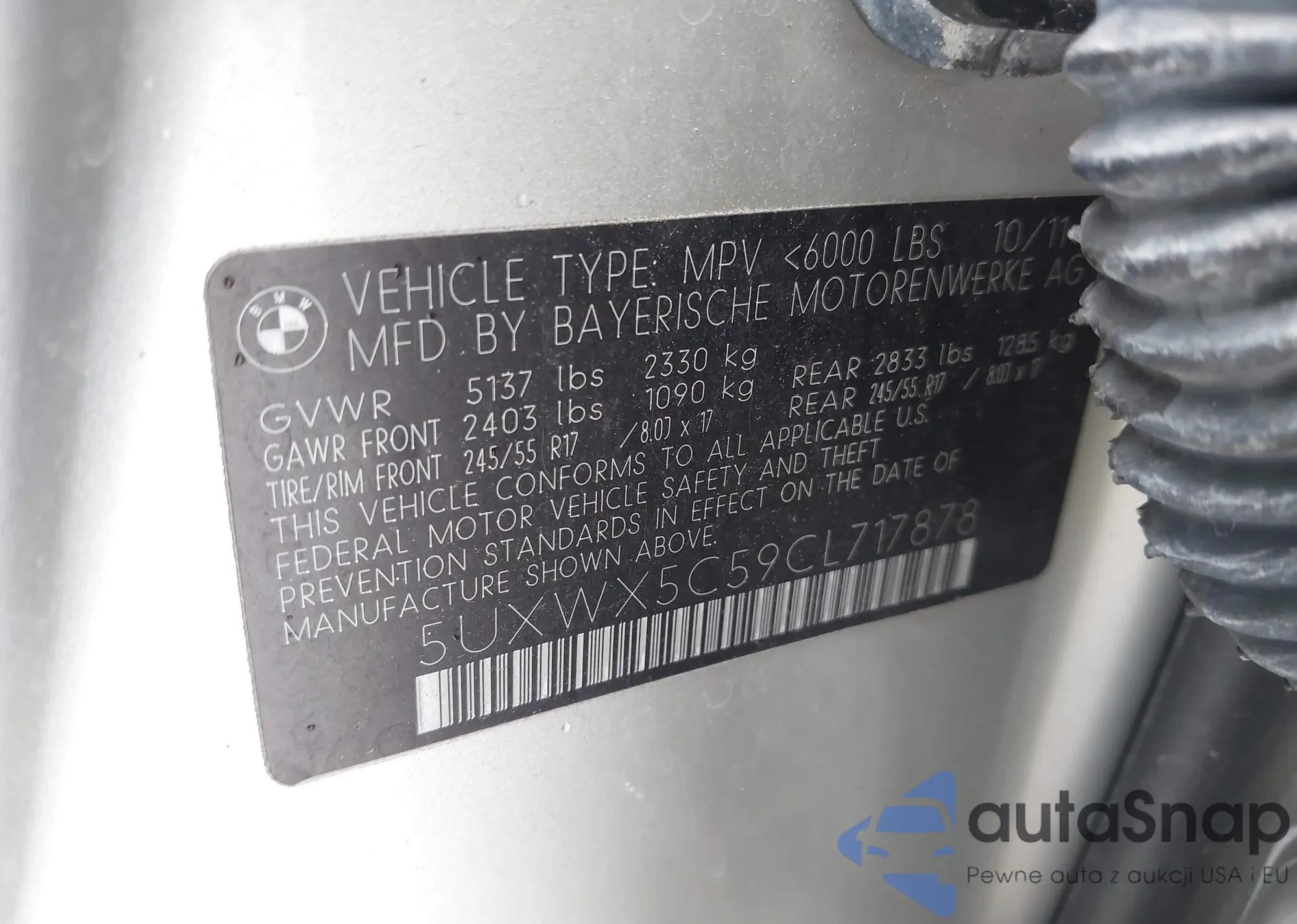 • VIN 5UXWX5C59CL717878