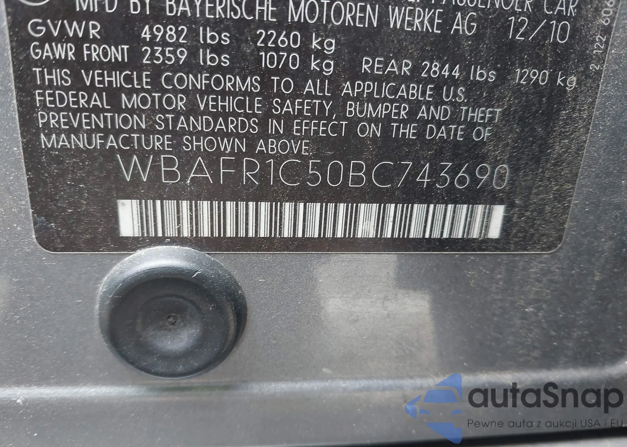 • VIN WBAFR1C50BC743690