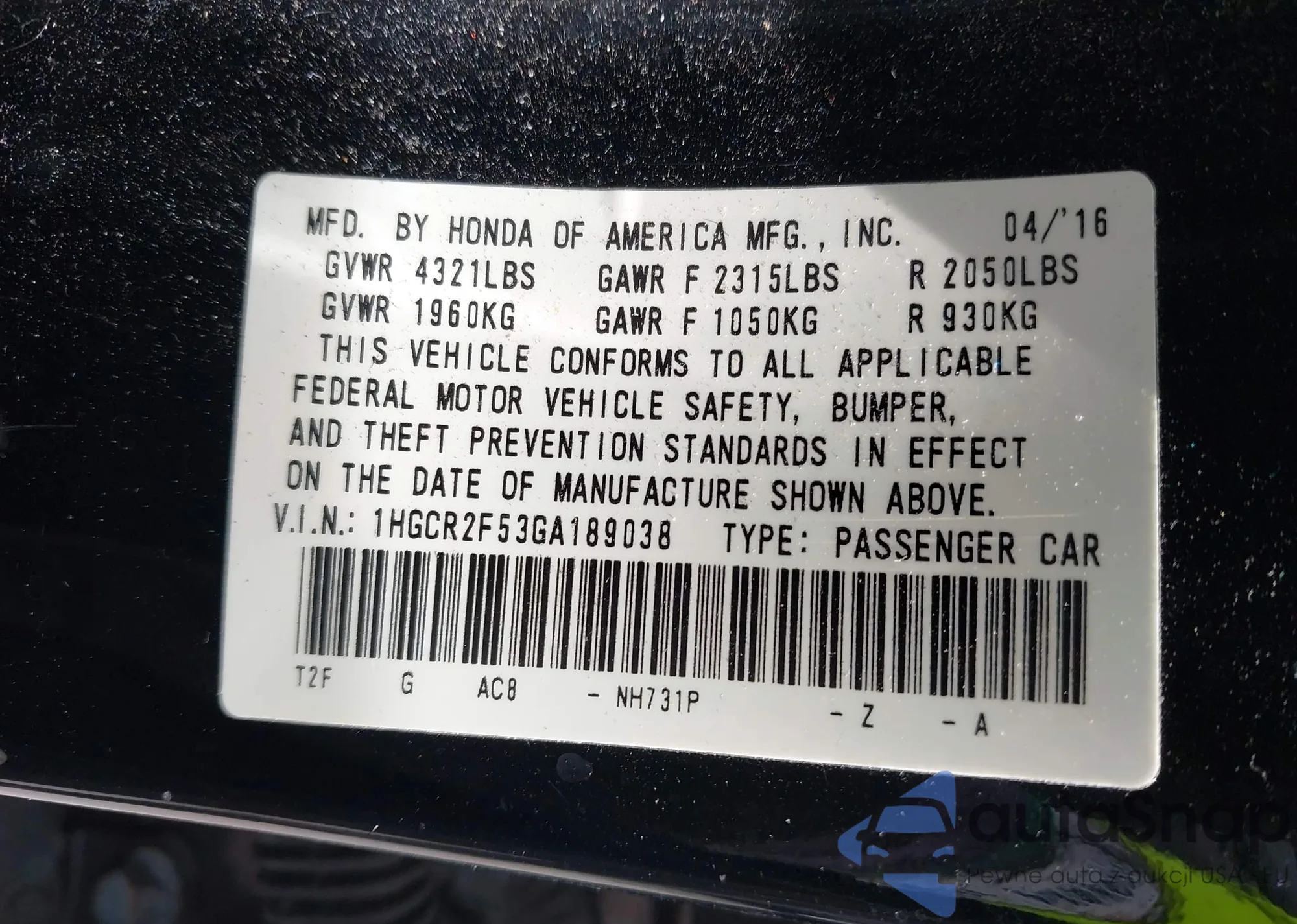 • VIN 1HGCR2F53GA189038