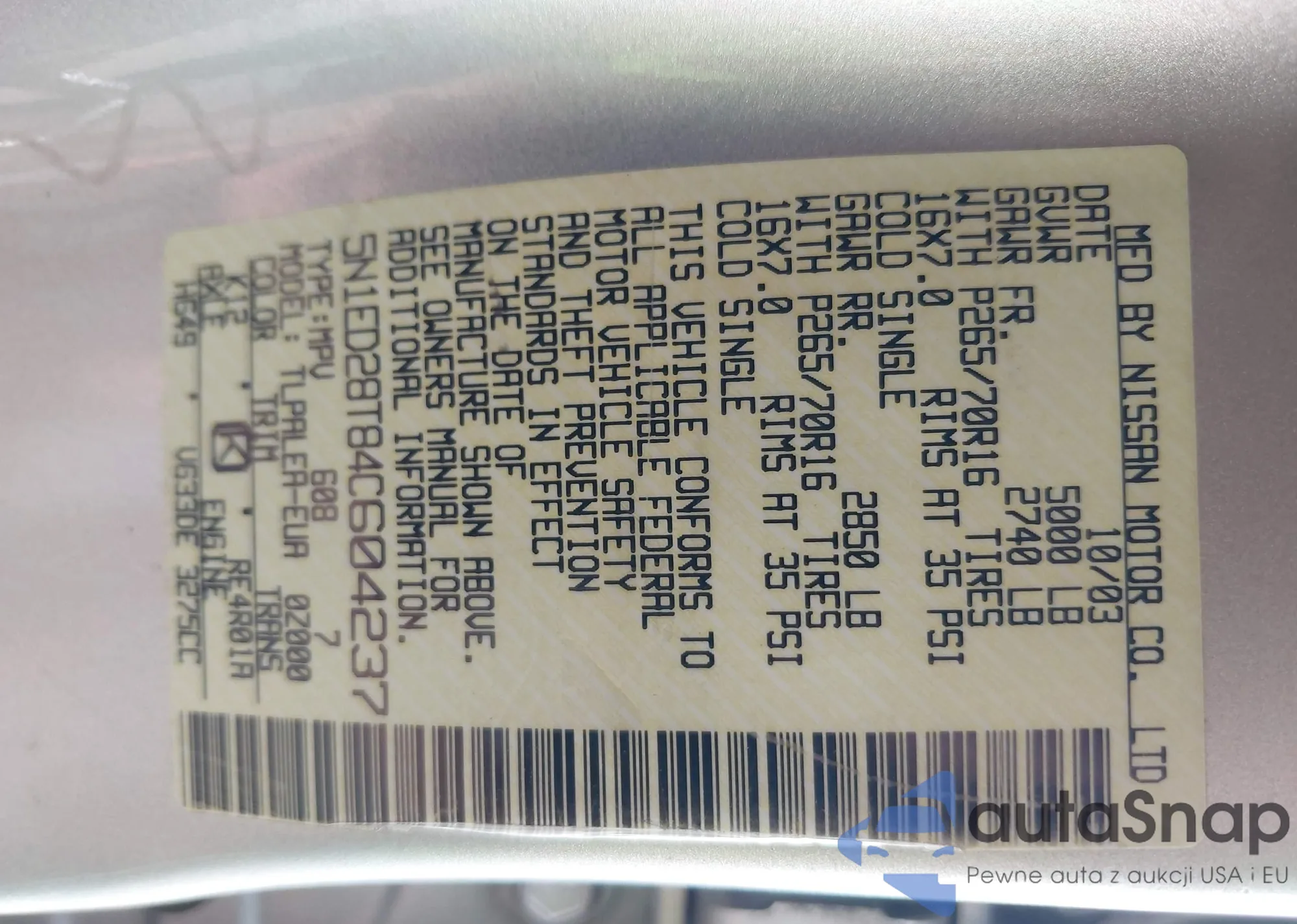 • VIN 5N1ED28T84C604237