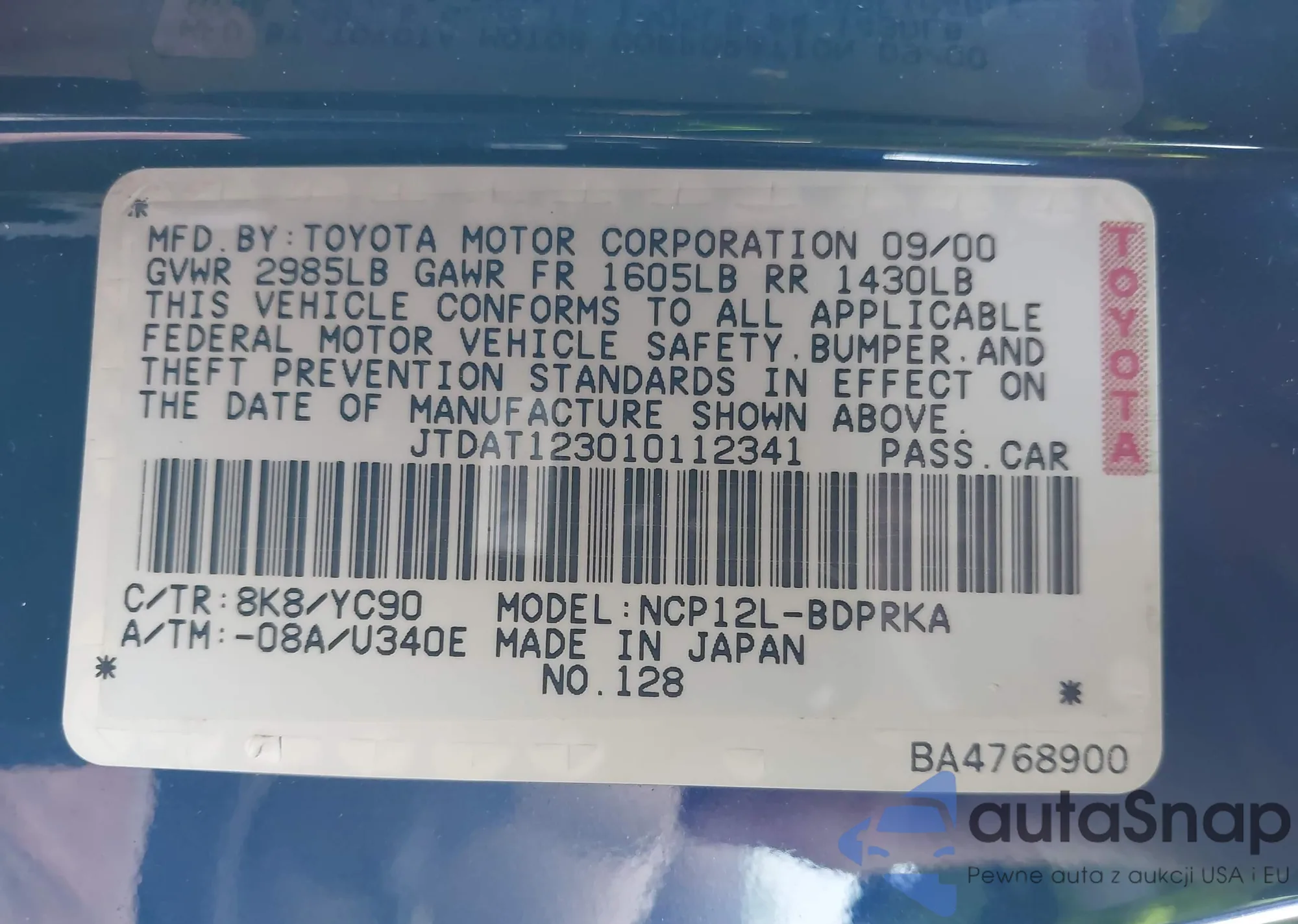 • Lot number 42705119