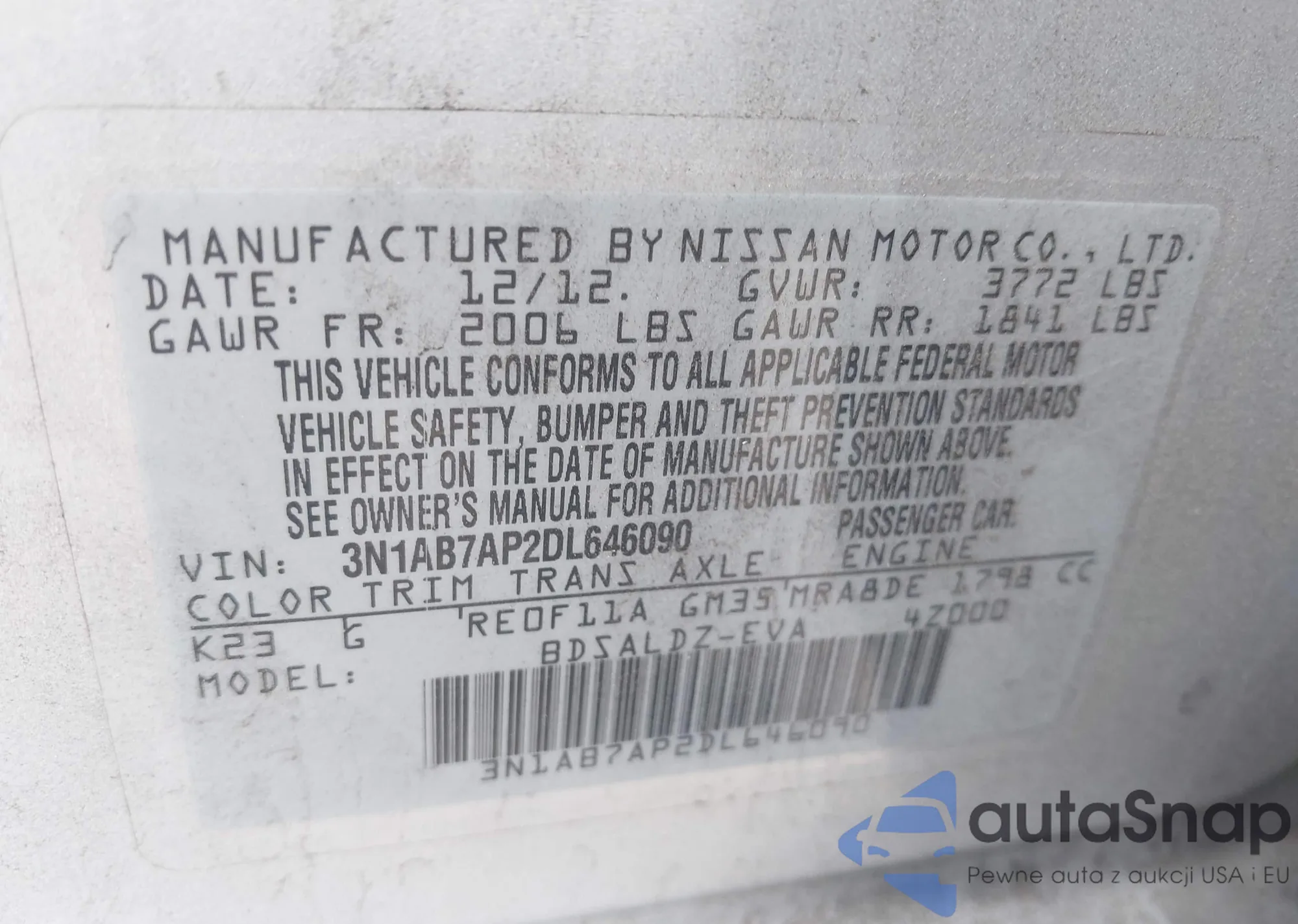 • VIN 3N1AB7AP2DL646090