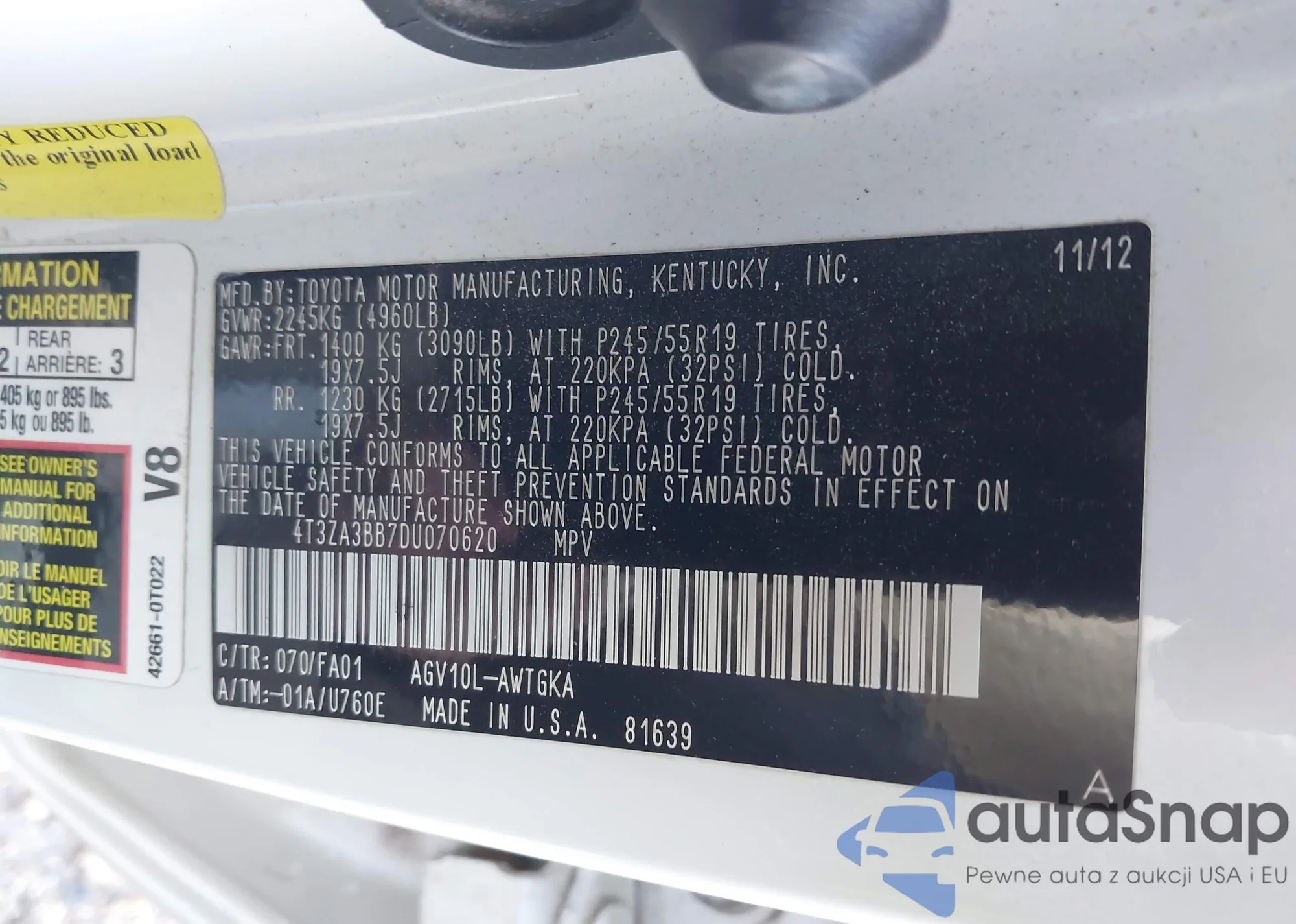 LOT: 42198846 VIN: 4T3ZA3BB7DU070620