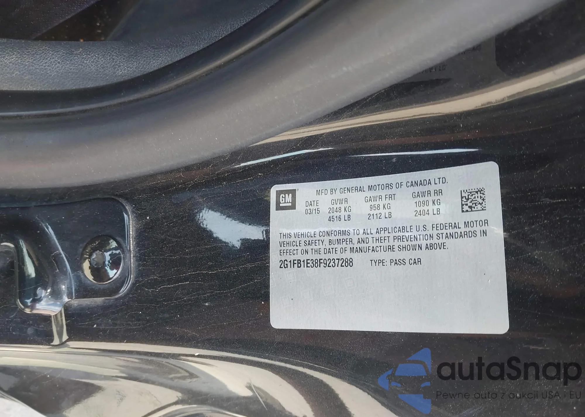 • VIN 2G1FB1E38F9237288